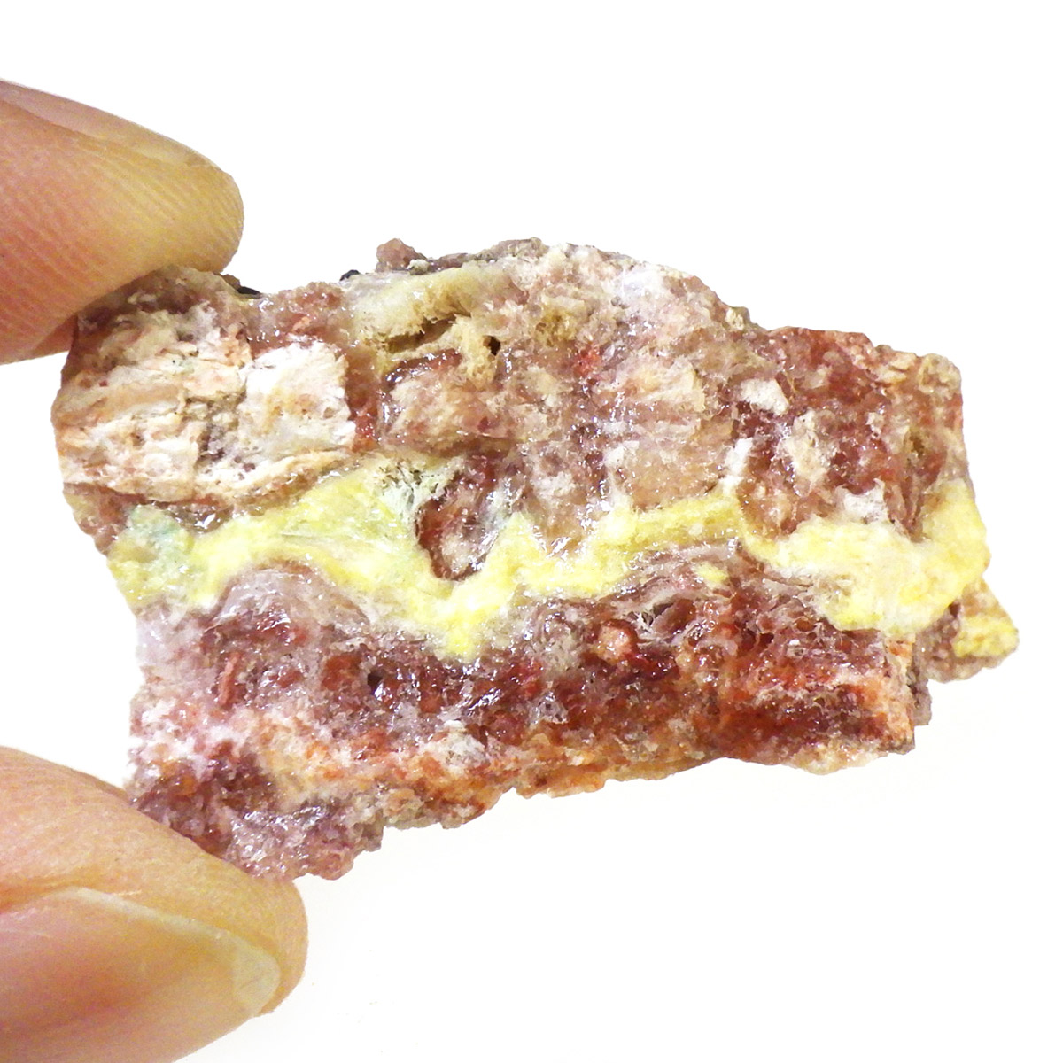 アメリカ・オレゴン州産のオレゴンオパール原石です。カラーは鈍いレッドからイエローで白も含む不透明なコモンオパールです。この色味は酸化鉄によるものです。表面はつるっと艶があります。