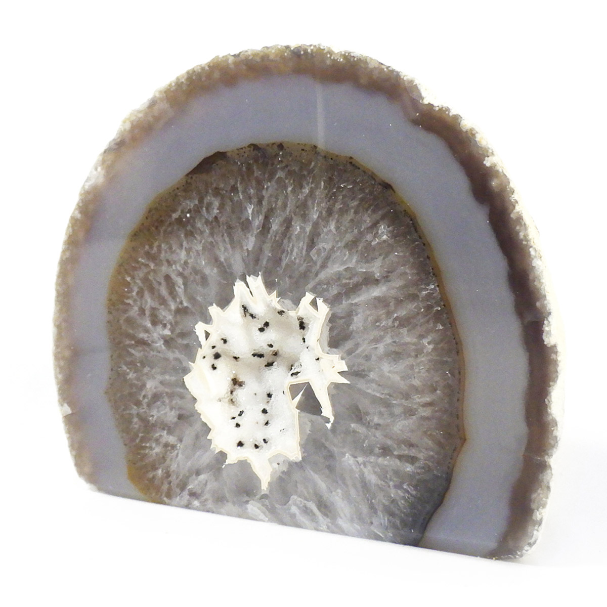 メノウは玉髄(ぎょくずい)の一種で、石英や蛋白石などの結晶が網目状に集まり、緻密に固まった鉱物です。また、メノウ(瑪瑙)の名前の由来は、外観が馬の脳に似ているためつけられました。メノウは健康や長寿、富をもたらす石といわれており、持つ人の心に強く働きかけ、穏やかで安らかな精神状態を与えてくれるといわれています。