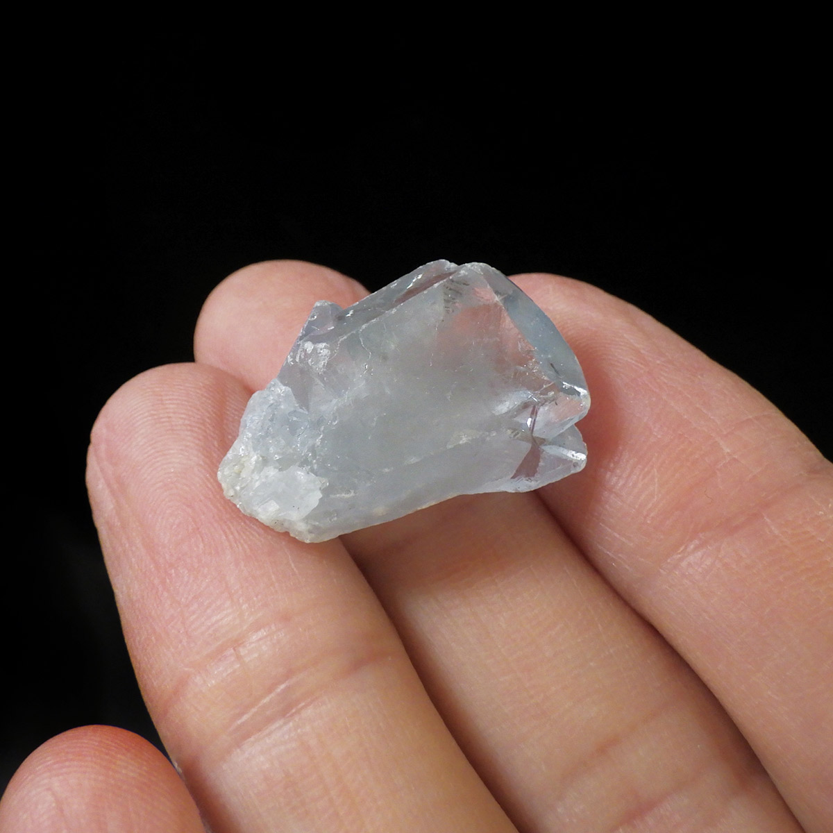 澄んだ空の色をほうふつさせる人気の鉱物セレスタイト結晶原石です。和名は天青石。透明感のある淡い空色の結晶は、キラキラと輝いて存在感があります。結晶面がある単結晶でコレクションにおすすめのサイズ。小さいですが心が洗われるほどに綺麗なセレスタイトです。