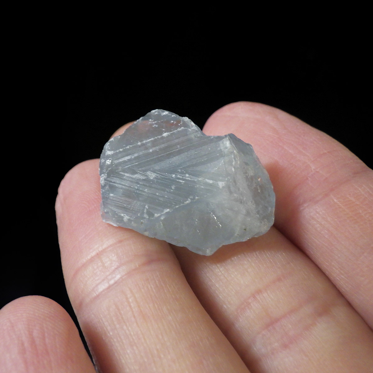 澄んだ空の色をほうふつさせる人気の鉱物セレスタイト結晶原石です。和名は天青石。透明感のある淡い空色の結晶は、キラキラと輝いて存在感があります。結晶面がある単結晶でコレクションにおすすめのサイズ。小さいですが心が洗われるほどに綺麗なセレスタイトです。