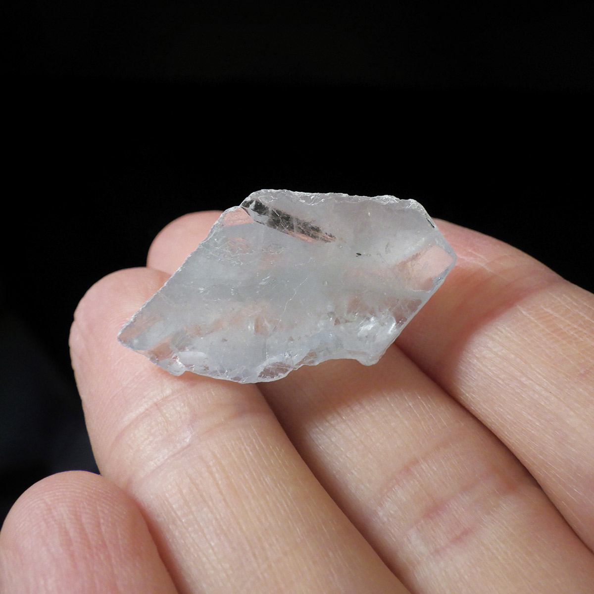 澄んだ空の色をほうふつさせる人気の鉱物セレスタイト結晶原石です。和名は天青石。透明感のある淡い空色の結晶は、キラキラと輝いて存在感があります。結晶面がある単結晶でコレクションにおすすめのサイズ。小さいですが心が洗われるほどに綺麗なセレスタイトです。