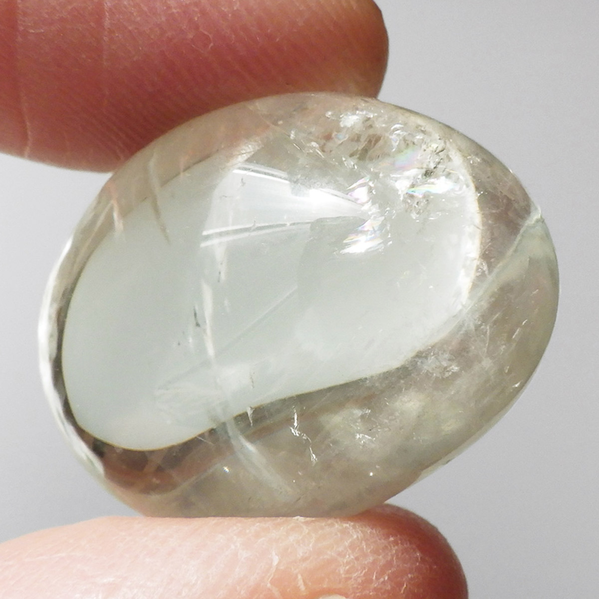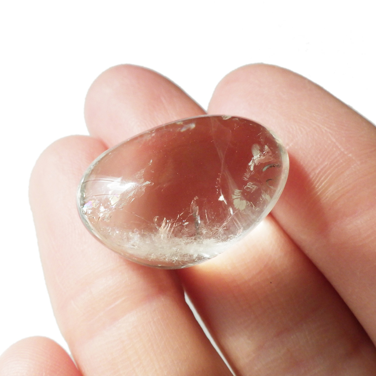 ブラジル・バイーア州産のプラシオライト、タンブルです。プラシオライトはアメジストを加熱処理することでグリーンに変化するのでグリーンアメジストとも呼ばれております。通常アメジストは加熱処理を加えると黄色に変化するのですが、ごく稀にグリーンに変化するものをプラシオライト(グリーンアメジスト)と呼んでいます。抜群の透明度にほのかなグリーンが優しく入っています。