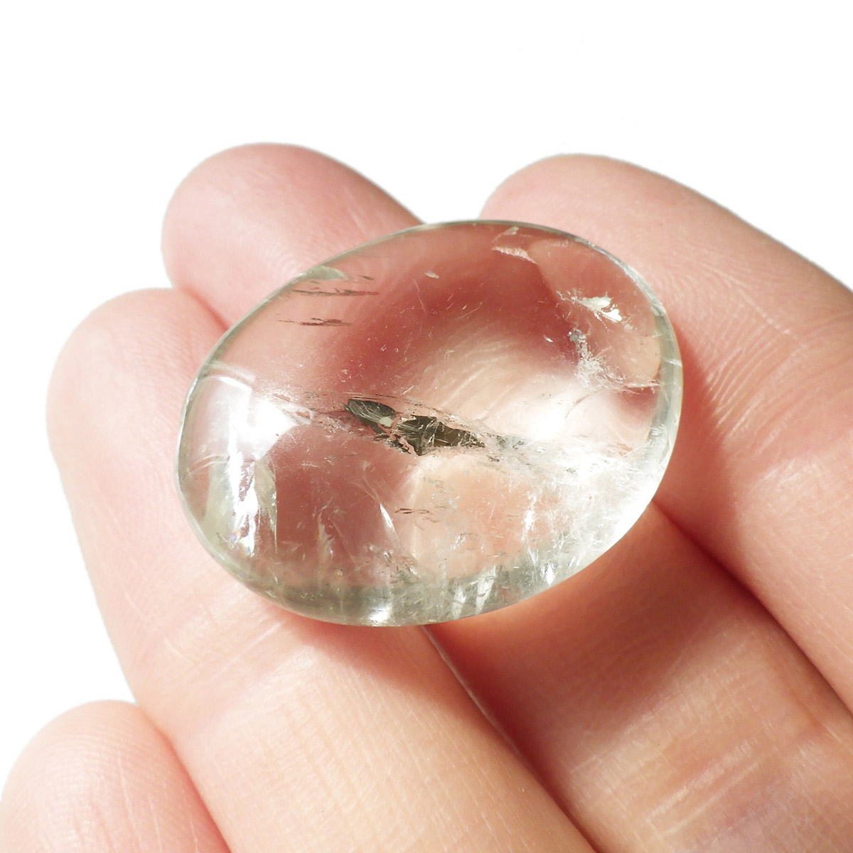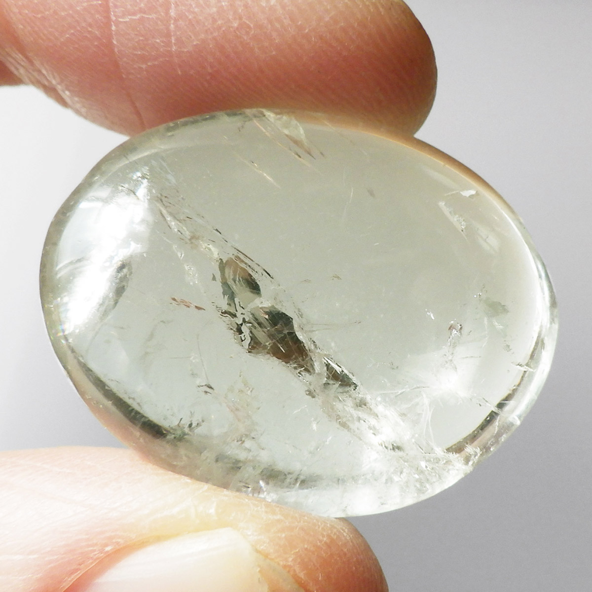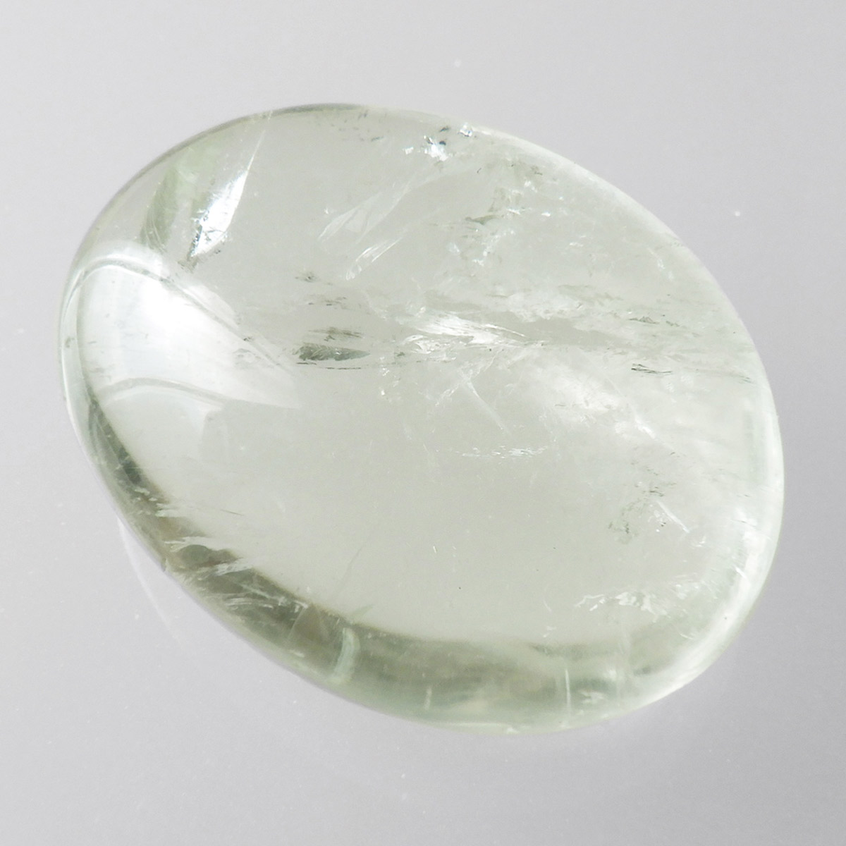 ブラジル・バイーア州産のプラシオライト、タンブルです。プラシオライトはアメジストを加熱処理することでグリーンに変化するのでグリーンアメジストとも呼ばれております。通常アメジストは加熱処理を加えると黄色に変化するのですが、ごく稀にグリーンに変化するものをプラシオライト(グリーンアメジスト)と呼んでいます。抜群の透明度にほのかなグリーンが優しく入っています。