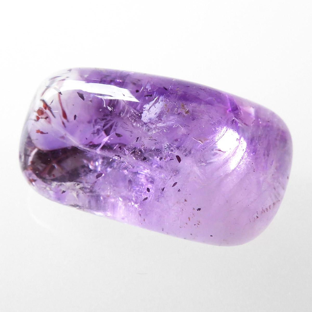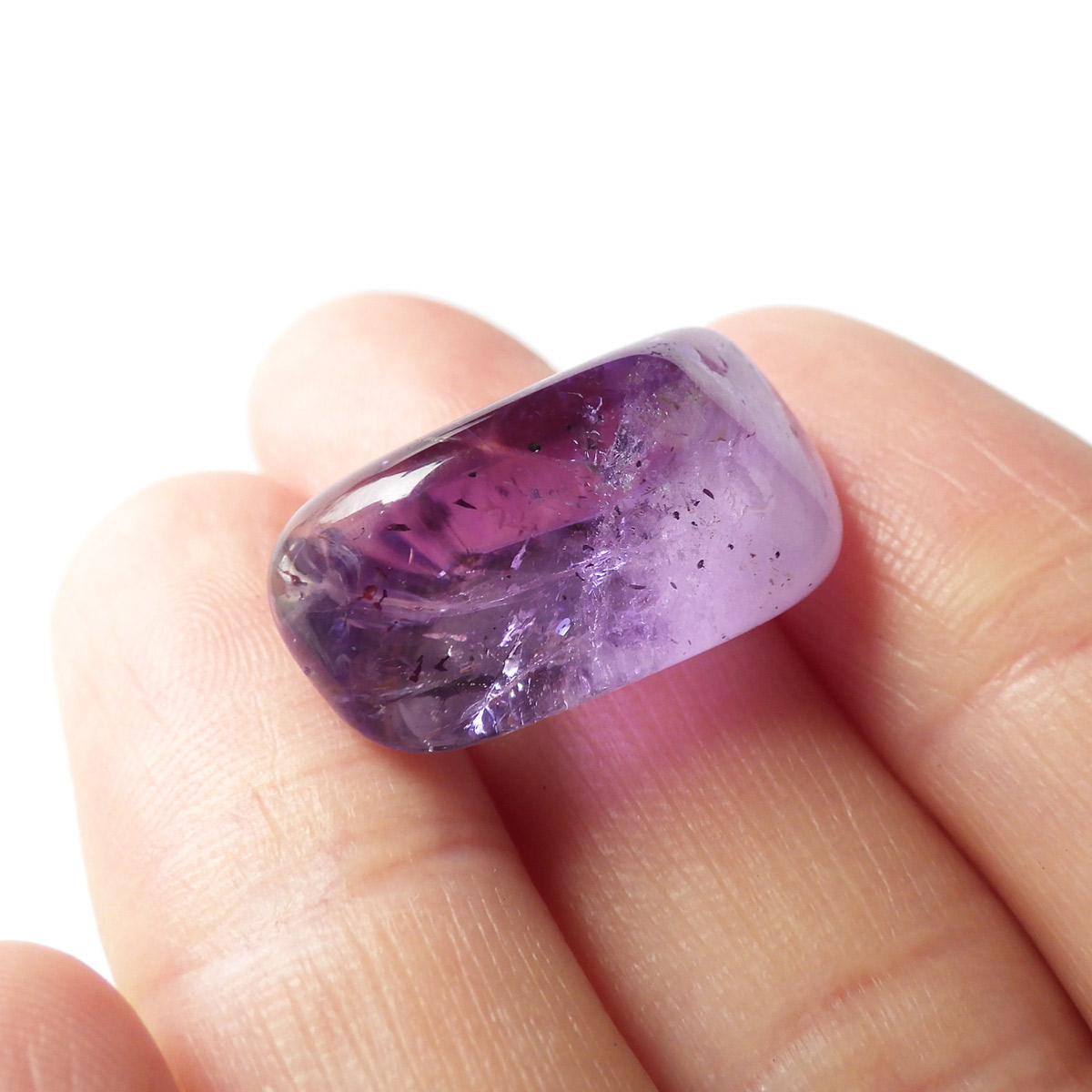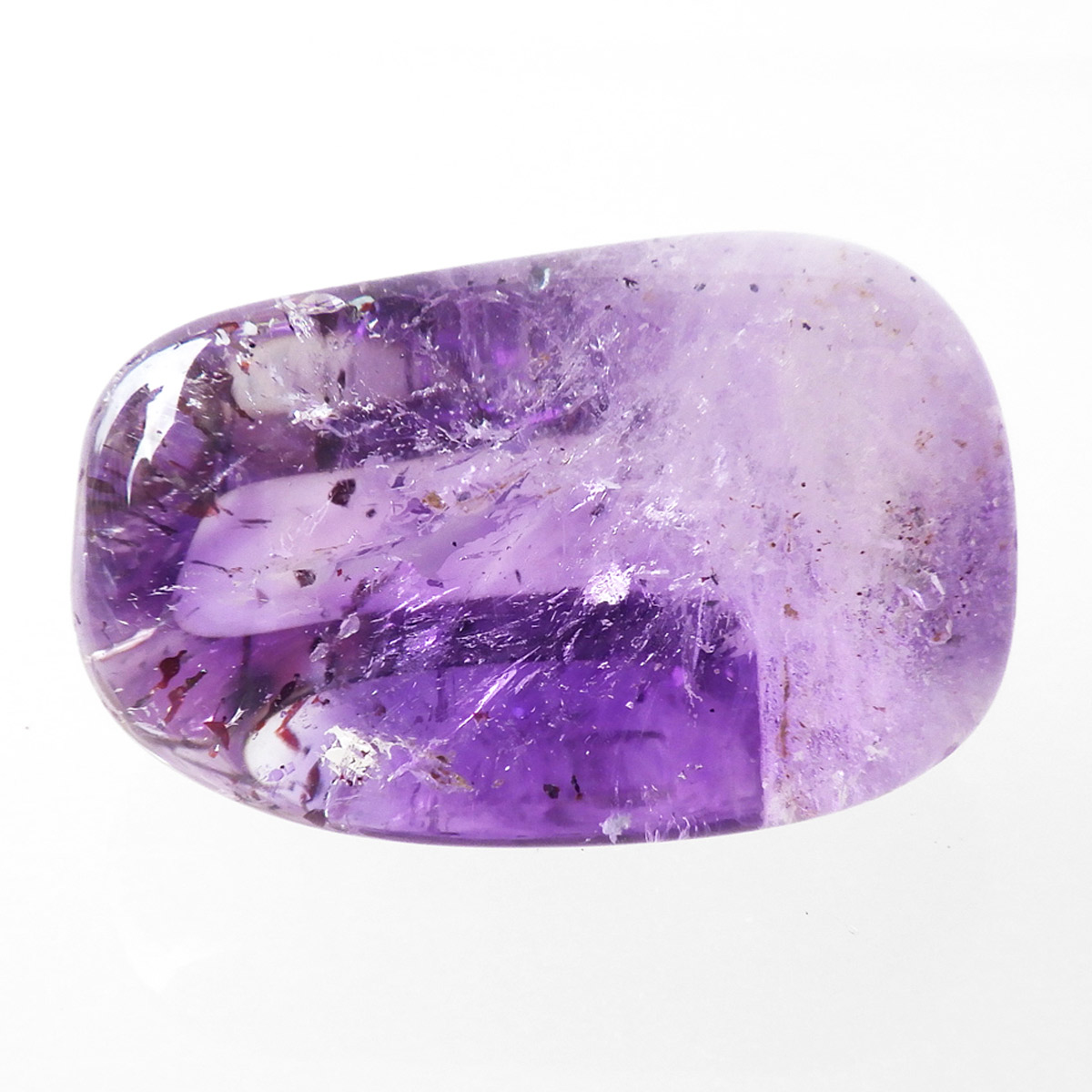 ナミビアのブランドバーグに産するアメジスト、通称ブランドバーグアメジスト、タンブルです。 透明なクォーツ内に煙のようにふわっと漂った美しいクリアなパープルのアメジストと黒いスモーキークォーツが見られます。透明度が高く、内包物がよく見えます。光によって輝く姿がこの産地特有のものでとてもきれいで癒されます。