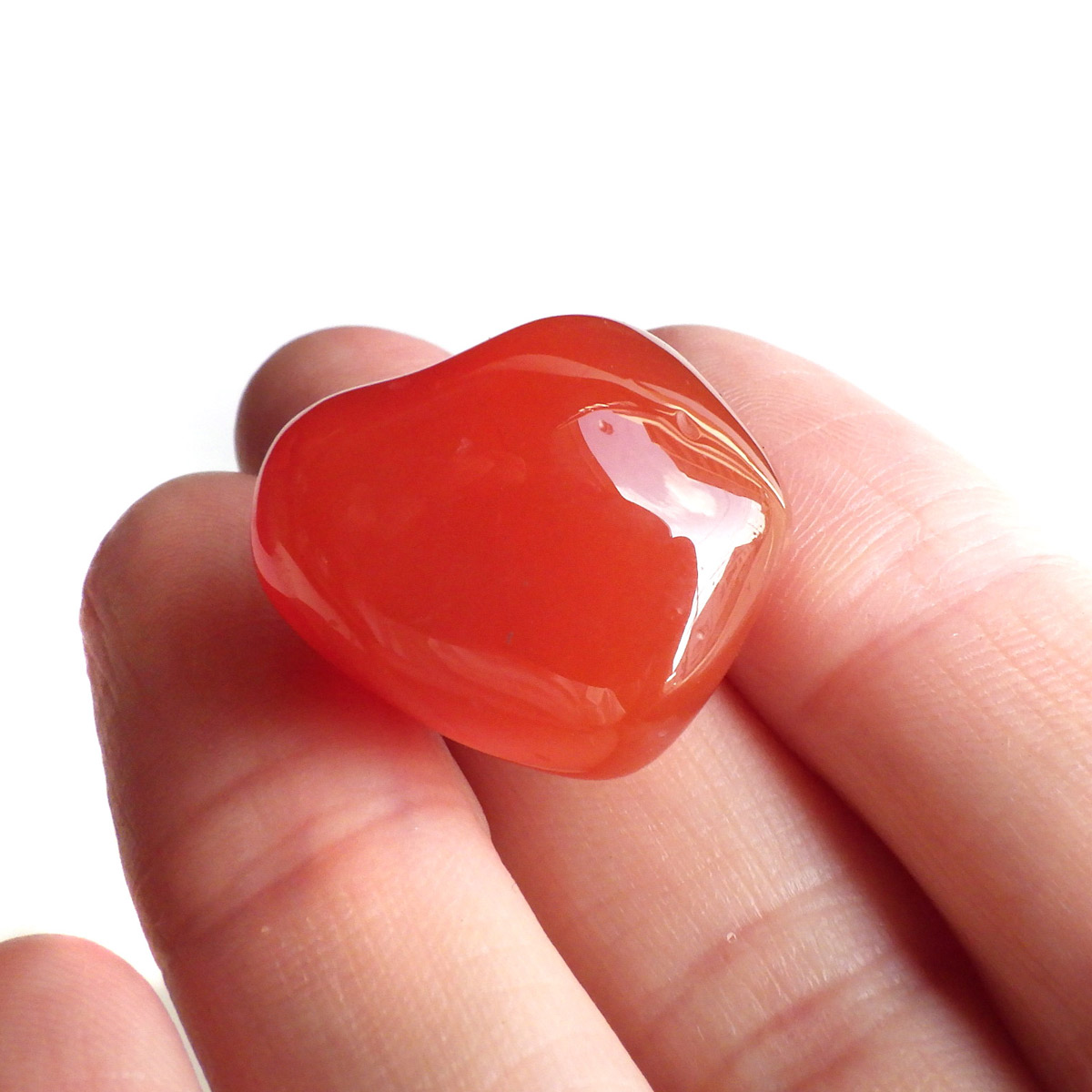 * カーネリアン 和名:紅玉髄 * カルセドニーの中で赤みが強く、オレンジ色のものをカーネリアンと呼びます。古代より護符として歴史に刻まれてきた石ですが、現在は達成したい目標やチャレンジする気持ちを高めてくれると言われ、いざという場面で力を発揮してくれると言われています。例えば、新しいビジネスに挑戦したり、転職を考えている人を後押ししてくれると言われ、試験などのお守りとして用いられ、希望を達成する石として重宝されています。