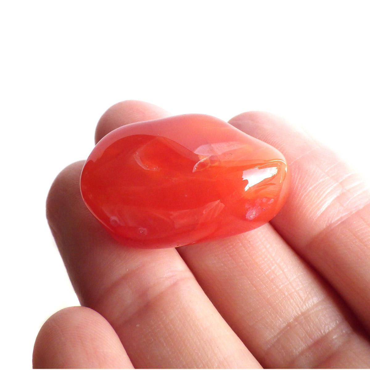 * カーネリアン 和名:紅玉髄 * カルセドニーの中で赤みが強く、オレンジ色のものをカーネリアンと呼びます。古代より護符として歴史に刻まれてきた石ですが、現在は達成したい目標やチャレンジする気持ちを高めてくれると言われ、いざという場面で力を発揮してくれると言われています。例えば、新しいビジネスに挑戦したり、転職を考えている人を後押ししてくれると言われ、試験などのお守りとして用いられ、希望を達成する石として重宝されています。