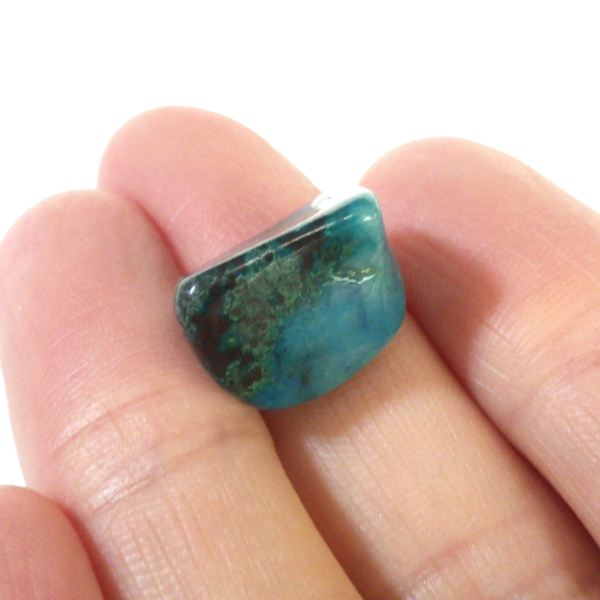 クリソコラは、何事に対してもしっかりと地に足を着けた実りあるものになるような生活ができるよう、サポートしてくれる石とされています。 仕事や恋愛、幸せな家庭生活や安産のお守りとしても人気です。 また、生活リズムを正しく整えてくれる作用もあり、心身のバランスを整えてストレスを吸収し、情緒を安定させてくれるといわれています。 体からマイナスエネルギーを抜いてくれる石でもあるので、健康のお守りとしてもオススメです。