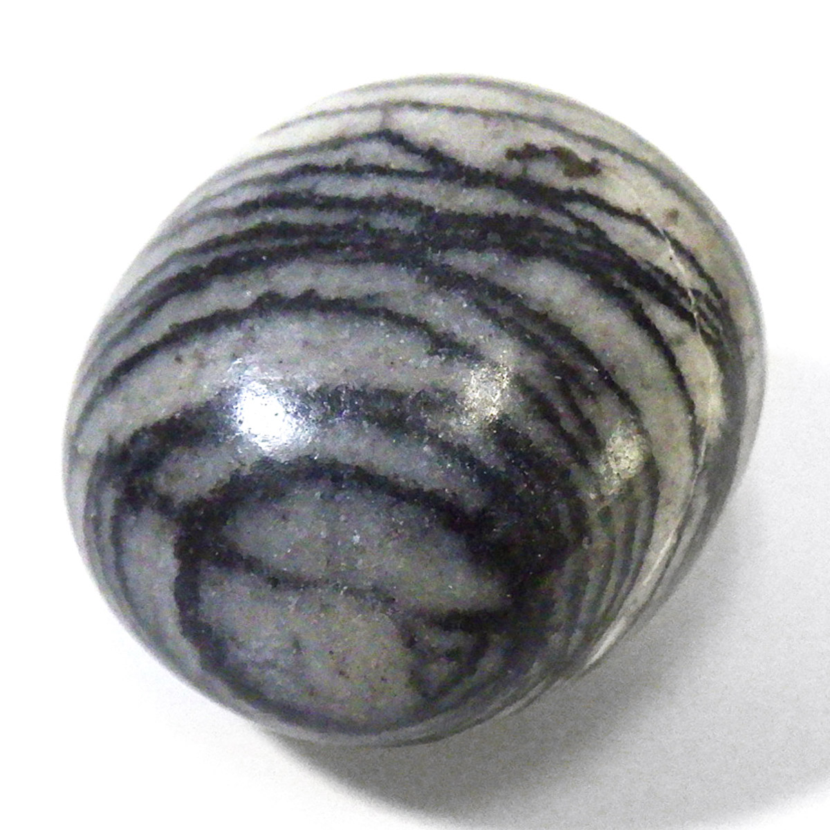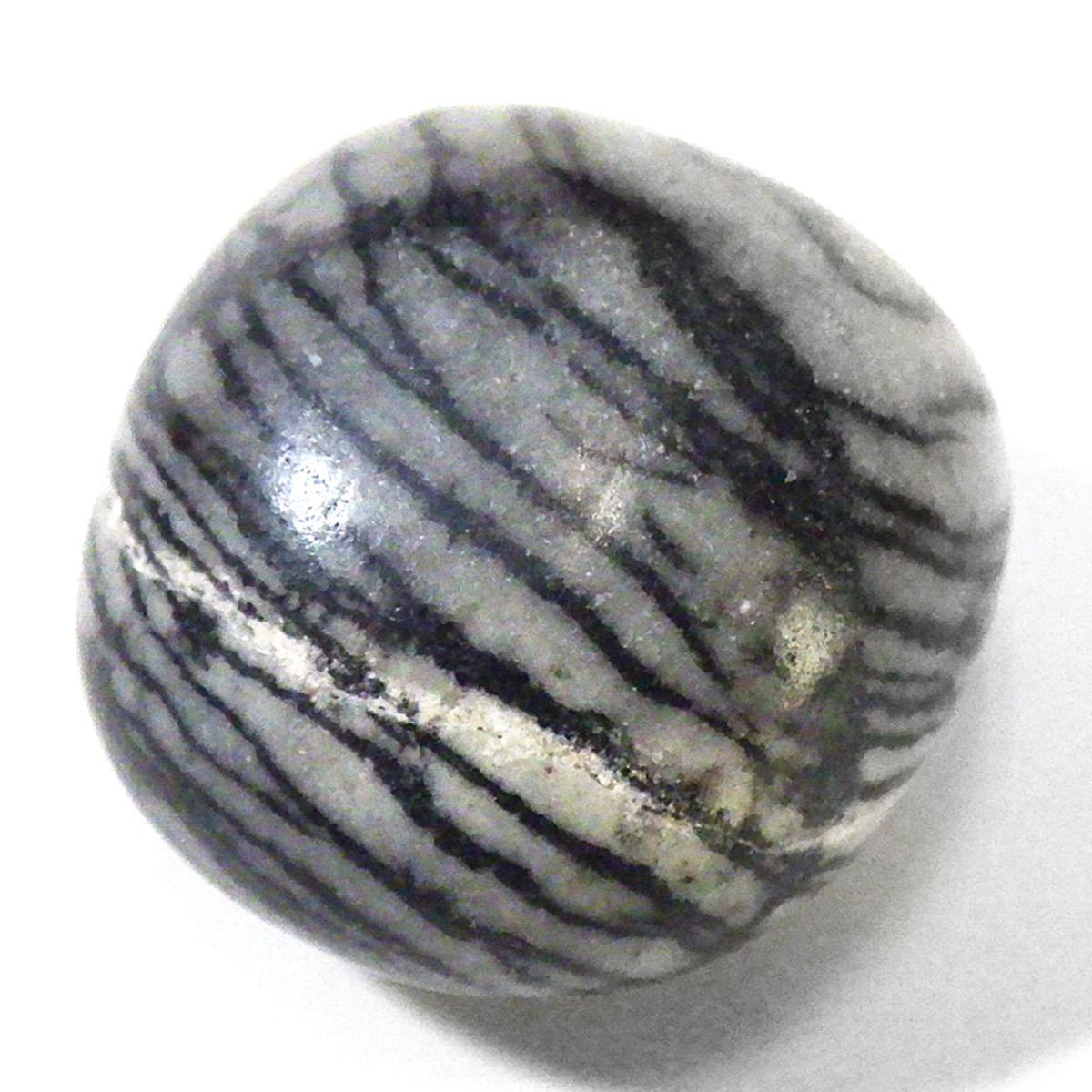 アメリカ産のスパイダーウェブジャスパー、タンブルです。ジャスパーは様々な不純物を含んだ石英の総称です。白地に黒く細い線を有した模様のジャスパーを蜘蛛の巣に見えることからスパイダーウェブジャスパーを呼ばれています。ジャスパーはダルメシアンジャスパーやゼブラジャスパーなどその見た目から名前が付けられているものがいくつかあります。スパイダーウェブジャスパーは意味合いとしては愛を絡めとる石として知られています。