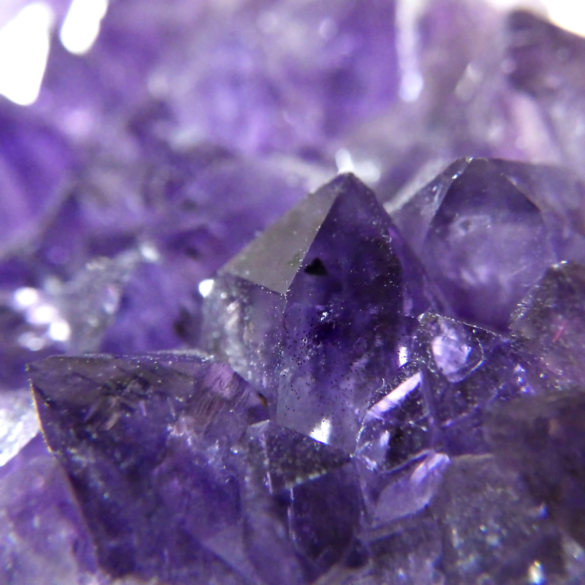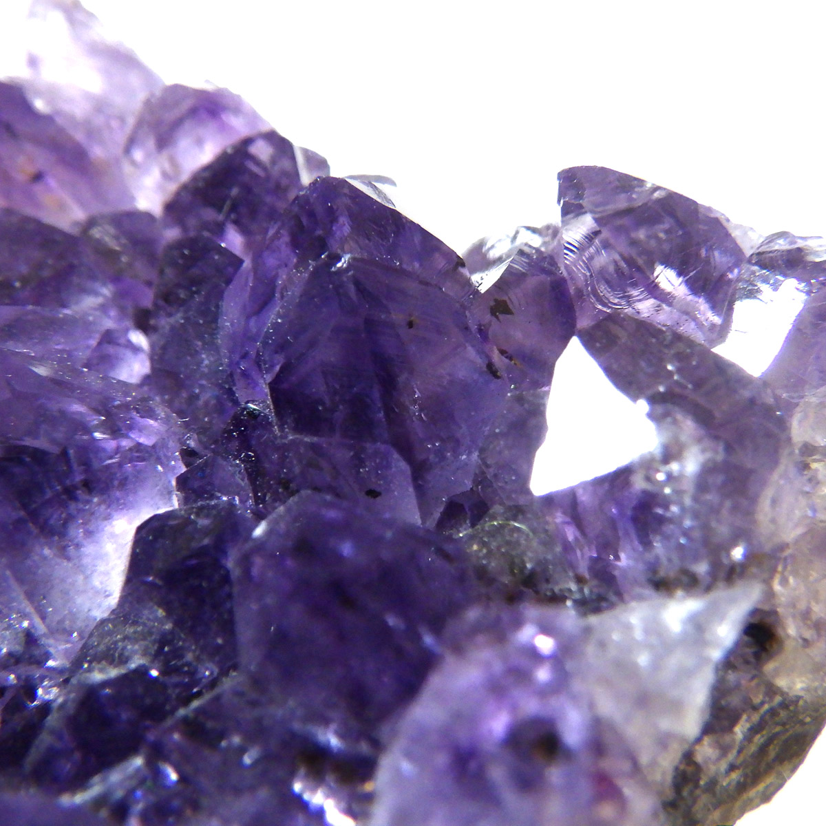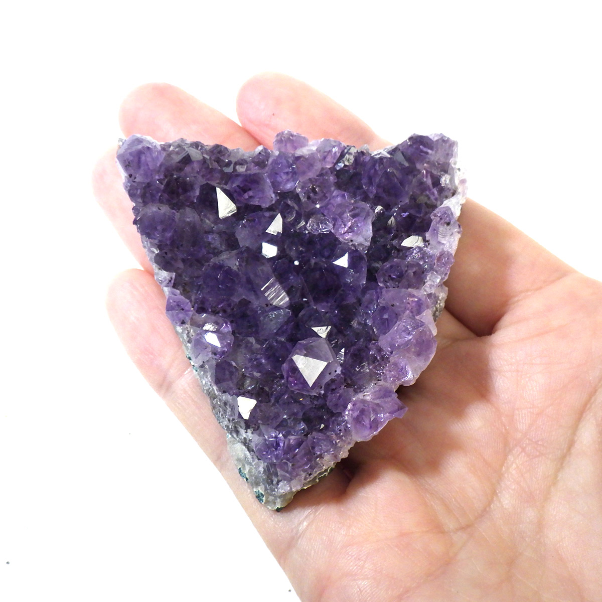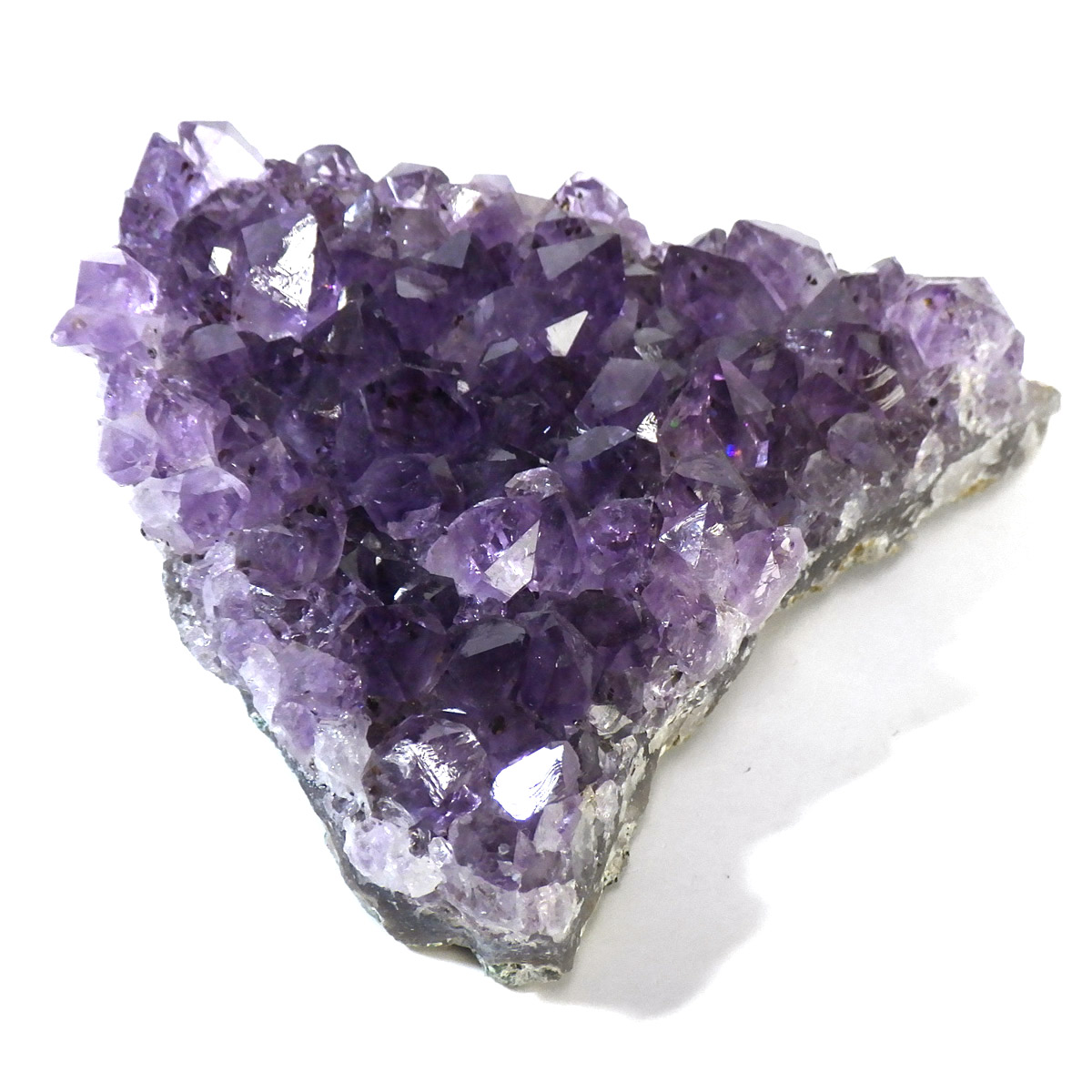 ブラジル産のアメジストクラスターです。一つ一つの結晶が美しく成長したアメジストです。透明感があり、上質なアメジストの証である紫の色がしっかりと入った濃紫のクラスターです。