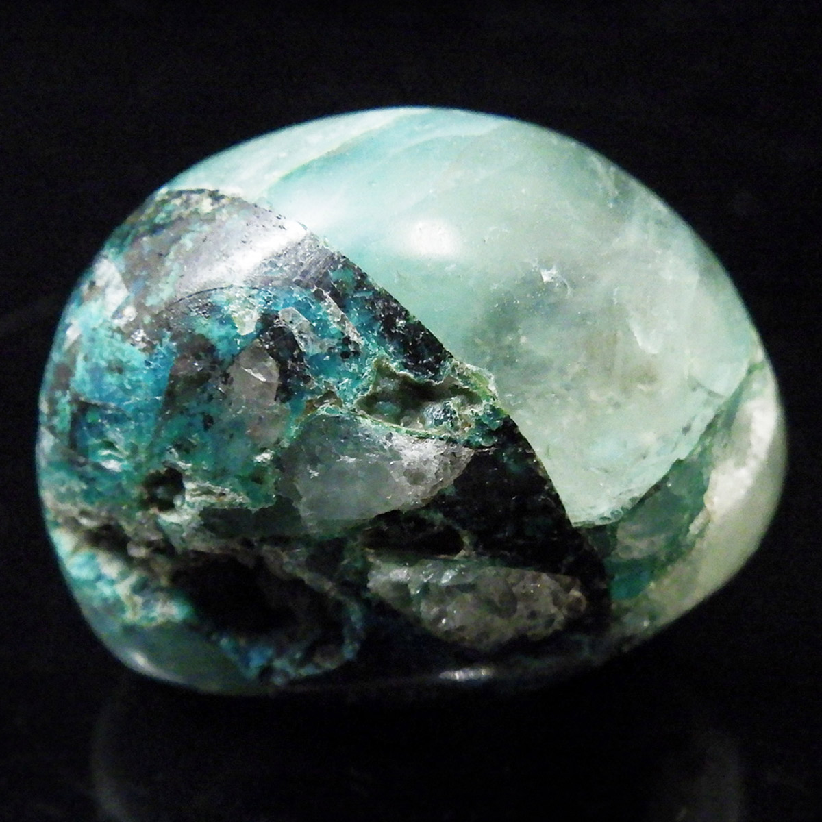 クリソコラは元々癒しのパワーが強力な鉱物で、ジェムシリカにも同じパワーを持っています。ヒーリングストーンとしても非常に人気が高く、肉体的・精神的なストレスを浄化する力を持っているとされています。平和・友好・調和・明快さを持ち主にもたらし、怒りを鎮め、感情面と肉体面のバランスを整えてくれます。また、女性性を強く持ったパワーストーンで、女性が身につければ、魅力を最大限に引出し、その魅力を失うことがないようサポートしてくれるパワーストーンだといわれています。