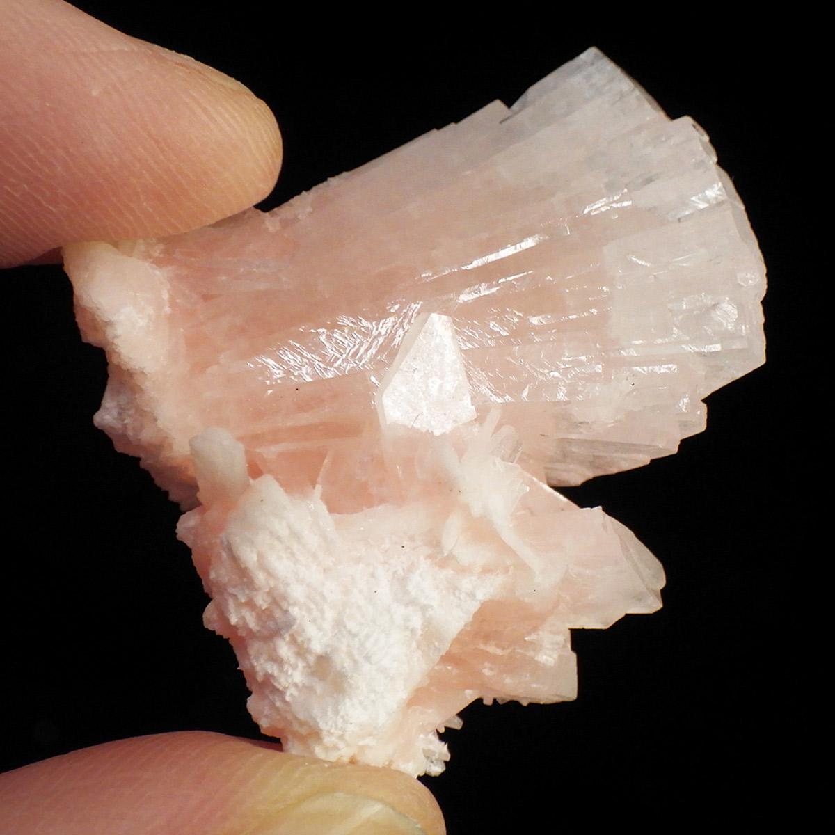 アメリカ・アイダホ州産のヒューランダイト原石です。和名は輝沸石。板状の結晶を持ち、艶っとした光沢があります。結晶がとても美しいヒューランダイトで透明な部分とペールピンクの優しい色合いが心穏やかにさせてくれる印象です。