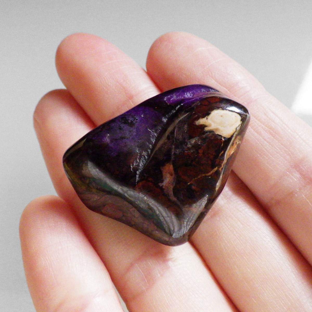 スギライトは、1977年に日本で日本人により発見された比較的新しい石で発見者の師である杉健一教授の名前にちなんで、「スギライト」と名づけられました。 しかし日本で発見された物は色彩も異なりあまり綺麗ではなかったようで、現在取引されているものは、南アフリカ産のものです。20世紀中に発見された鉱物の中でも1、2を競う心を癒す力のある石といわれ、強いヒーリング効果のある石で、心身の各組織を浄化、活性化する働きがあり心身ともに若返らせてくれるパワーがあるといわれます。
