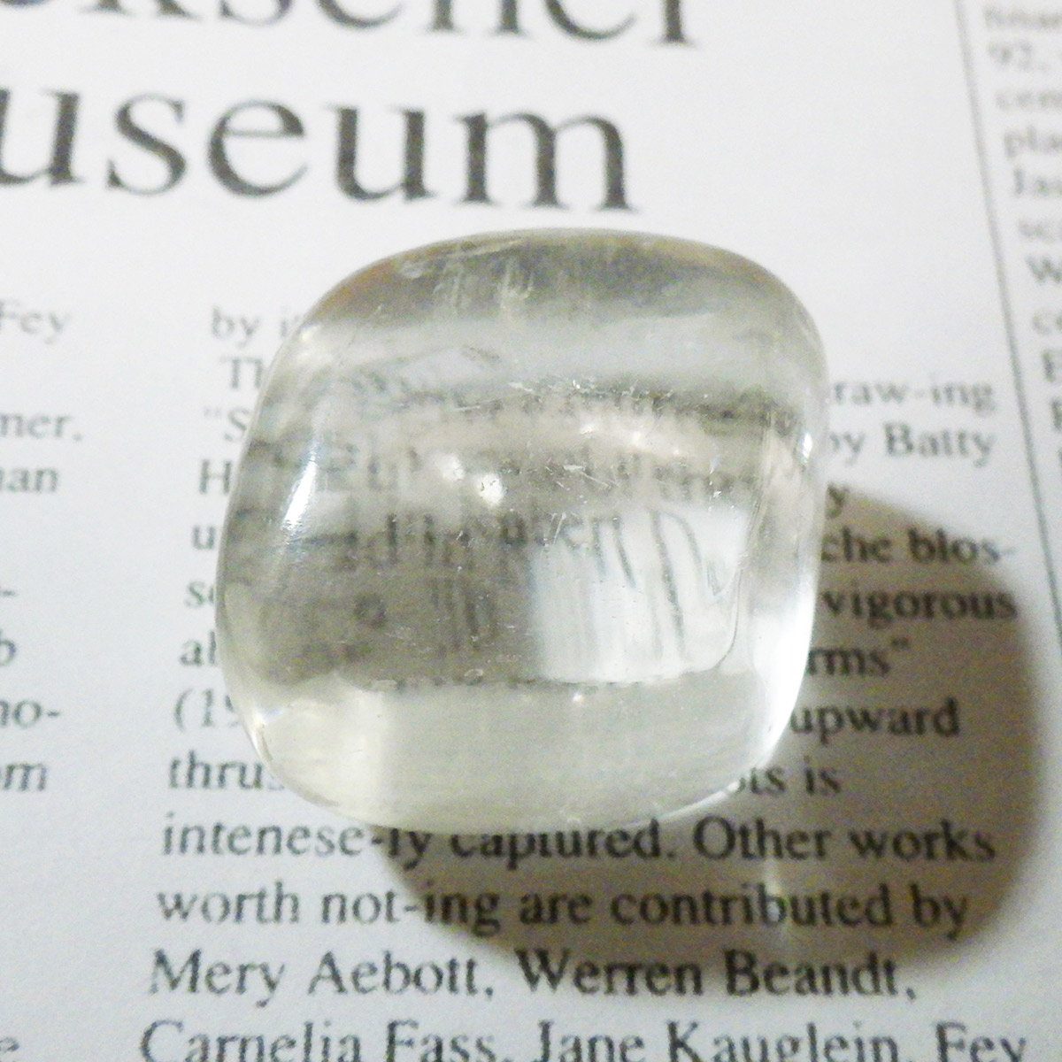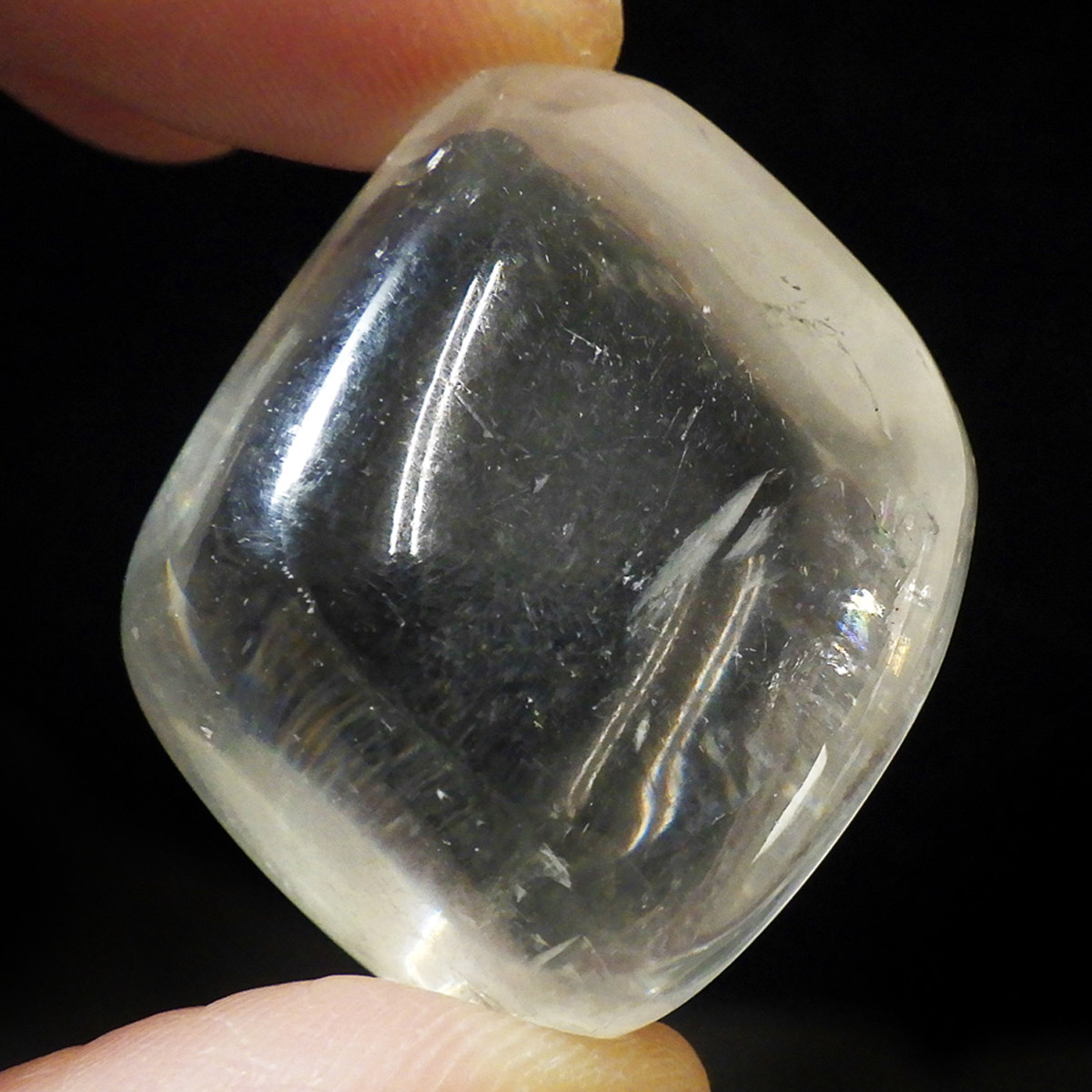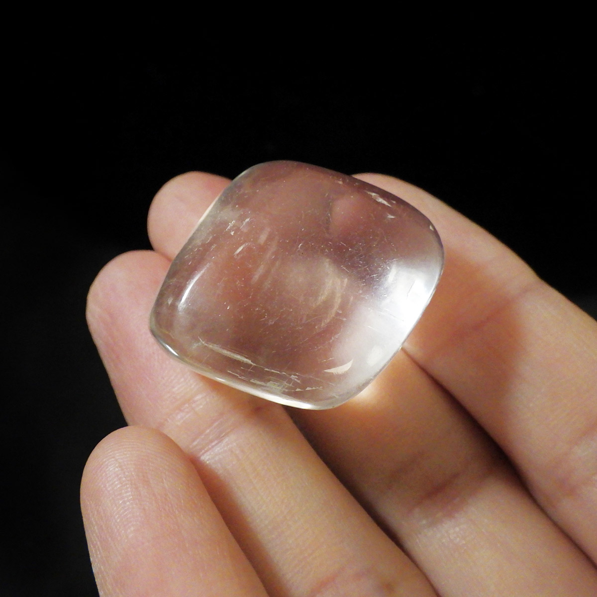 ブラジル産のイエローカルカルサイト、タンブルです。透明度の高いクリアで質の良いイエローカルサイトです。複屈折という光学現象を持ち、文字の上に載せると二つにダブって見える「ダブリング(二重像現象)」のような現象を起こします。透明度が高く、レインボーも見られ、とてもきれいでおすすめです。様々な表情でひかりますので、ぜひ自然光の元、手に乗せて光を楽しんでみてください。