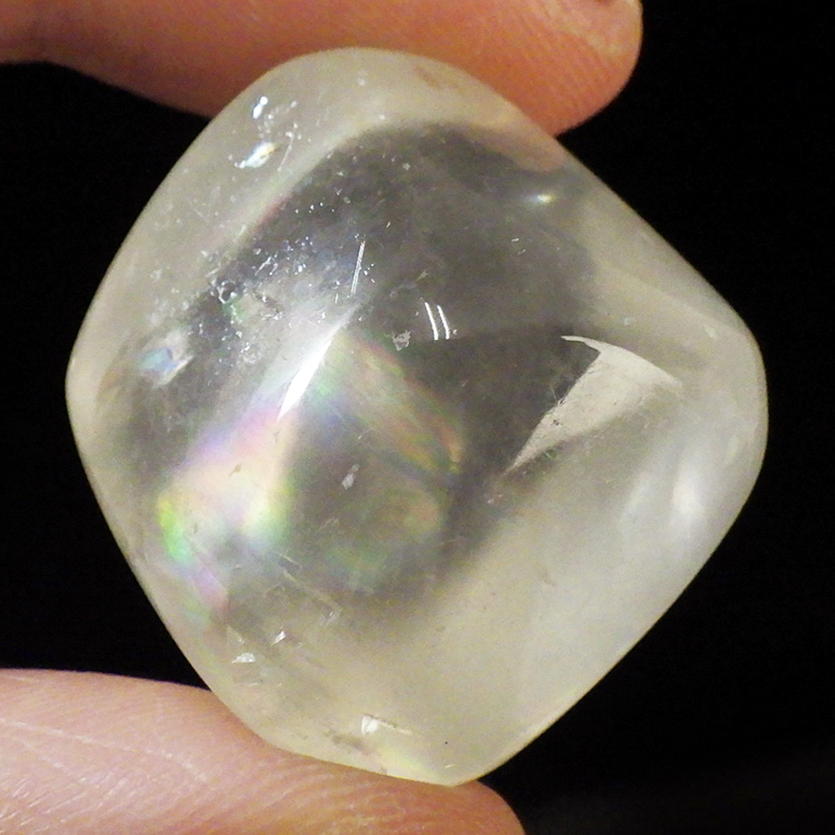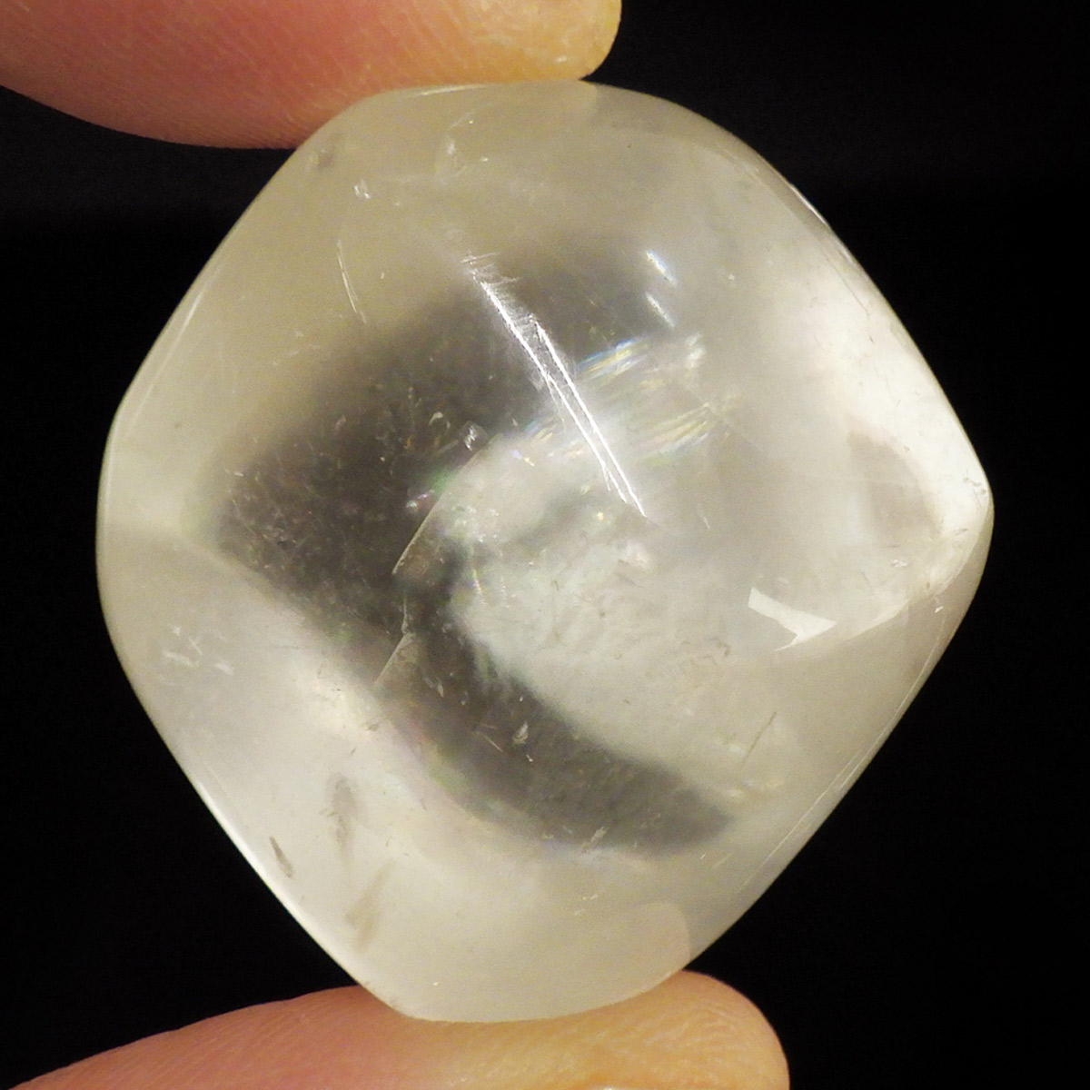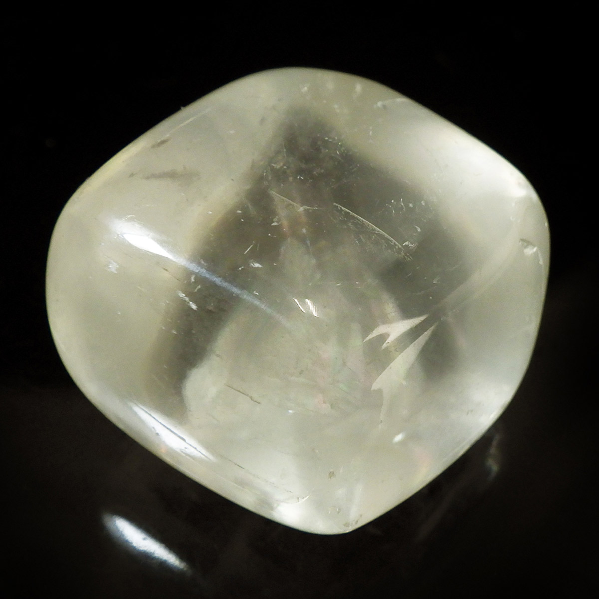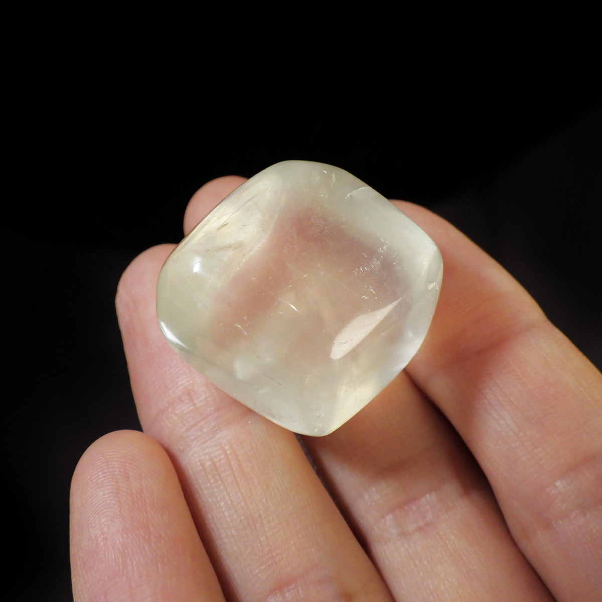 ブラジル産のイエローカルカルサイト、タンブルです。透明度の高いクリアで質の良いイエローカルサイトです。複屈折という光学現象を持ち、文字の上に載せると二つにダブって見える「ダブリング(二重像現象)」のような現象を起こします。透明度が高く、レインボーも見られ、とてもきれいでおすすめです。様々な表情でひかりますので、ぜひ自然光の元、手に乗せて光を楽しんでみてください。