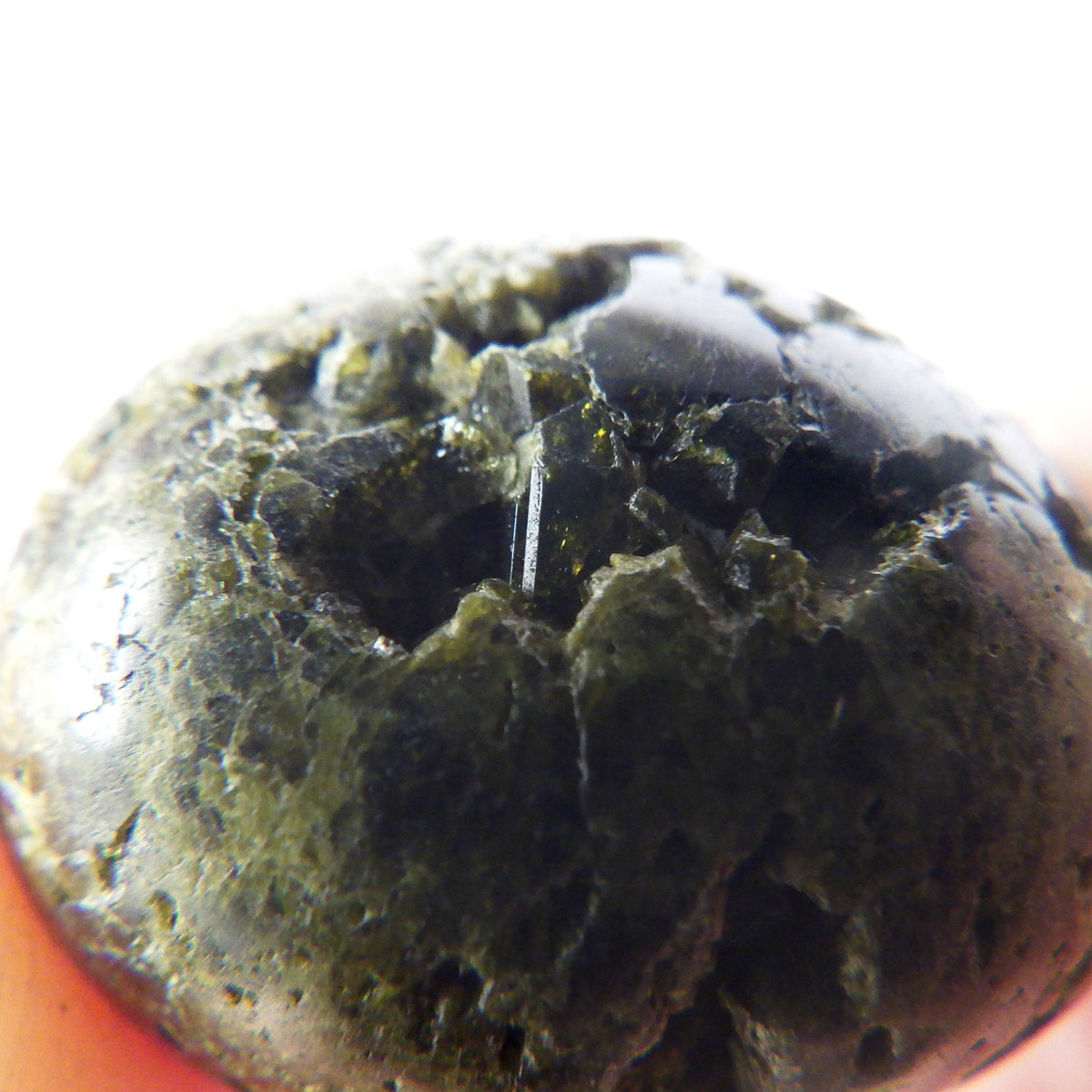 通常は柱状の連晶を成し、簾のように見える事から和名では「緑簾石」と呼ばれています。見る方向によって色調が異なる性質、いわゆる多色性が強く、アルミニウムを多く含むと黄緑色から灰色に、鉄分が多いと深緑色から黒色に変化します。エピドートとは総称で、ほかにはクリノゾイサイト(斜灰簾石)、チューライト(桃簾石)、ゾイサイト(灰簾石)などがあります。
