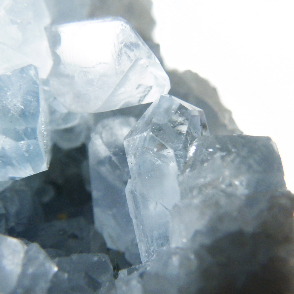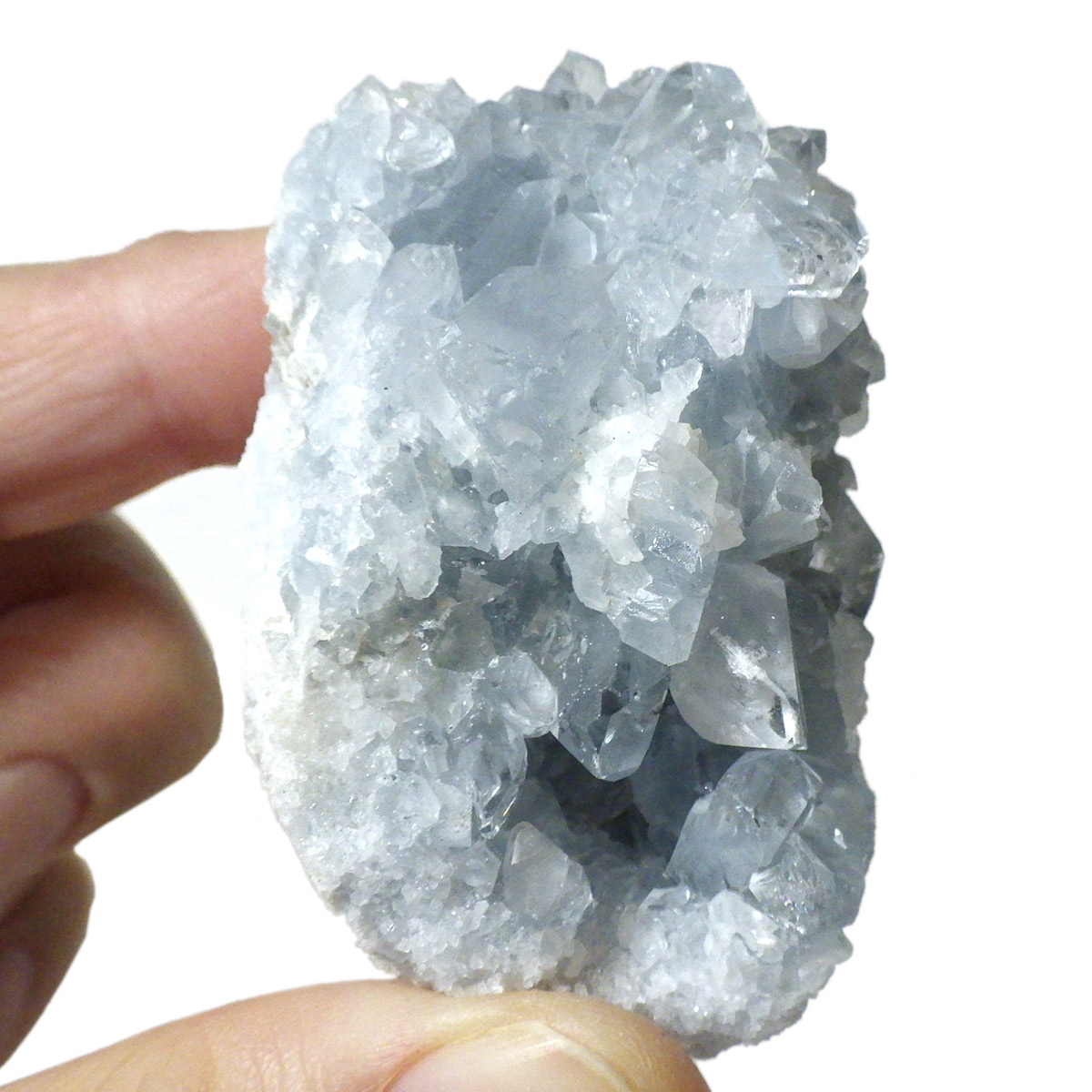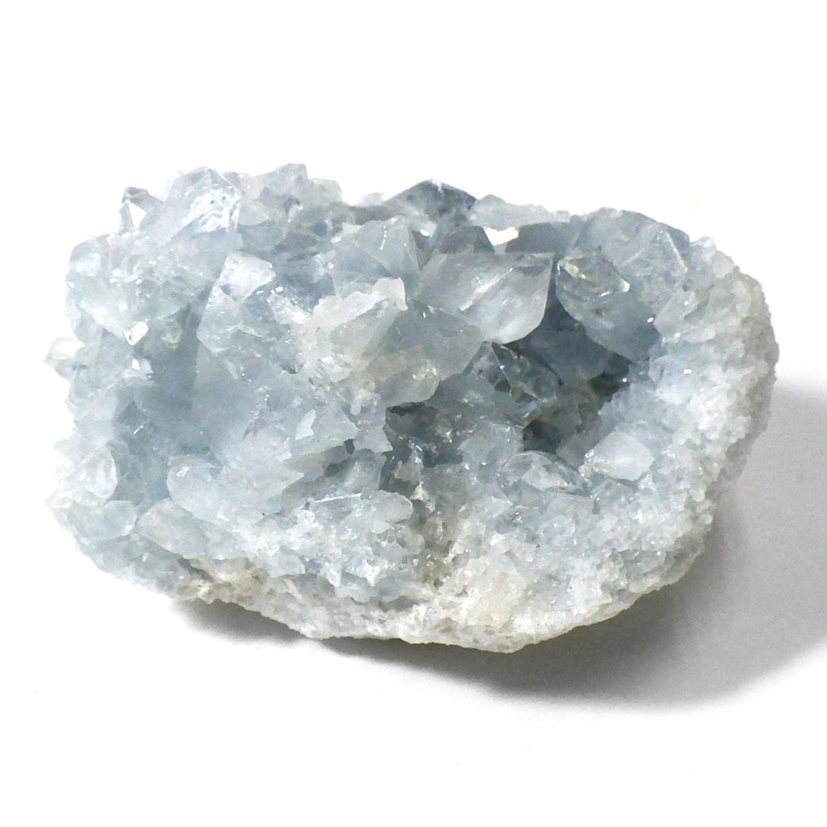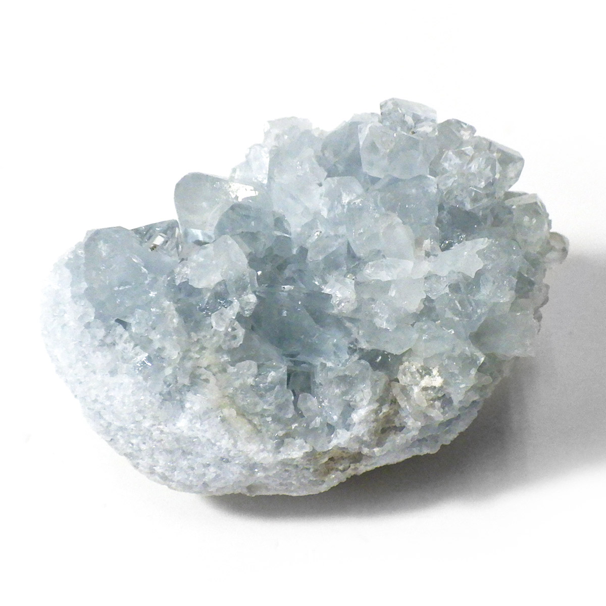 セレスタイト(天青石)母岩付きクラスターです。マダガスカル産のものは、母岩が丸みを帯びており、土台が白っぽいのが特徴です。 丸みを帯びた可愛いフォルムで、透明感ある濃いブルーの結晶は非常に魅力的です。