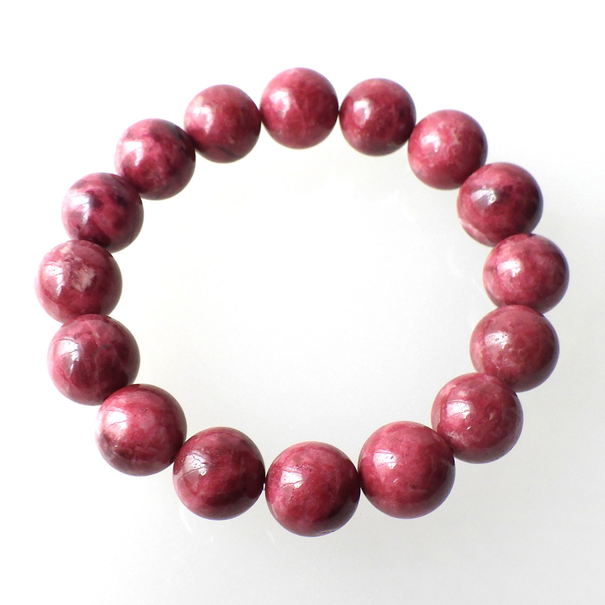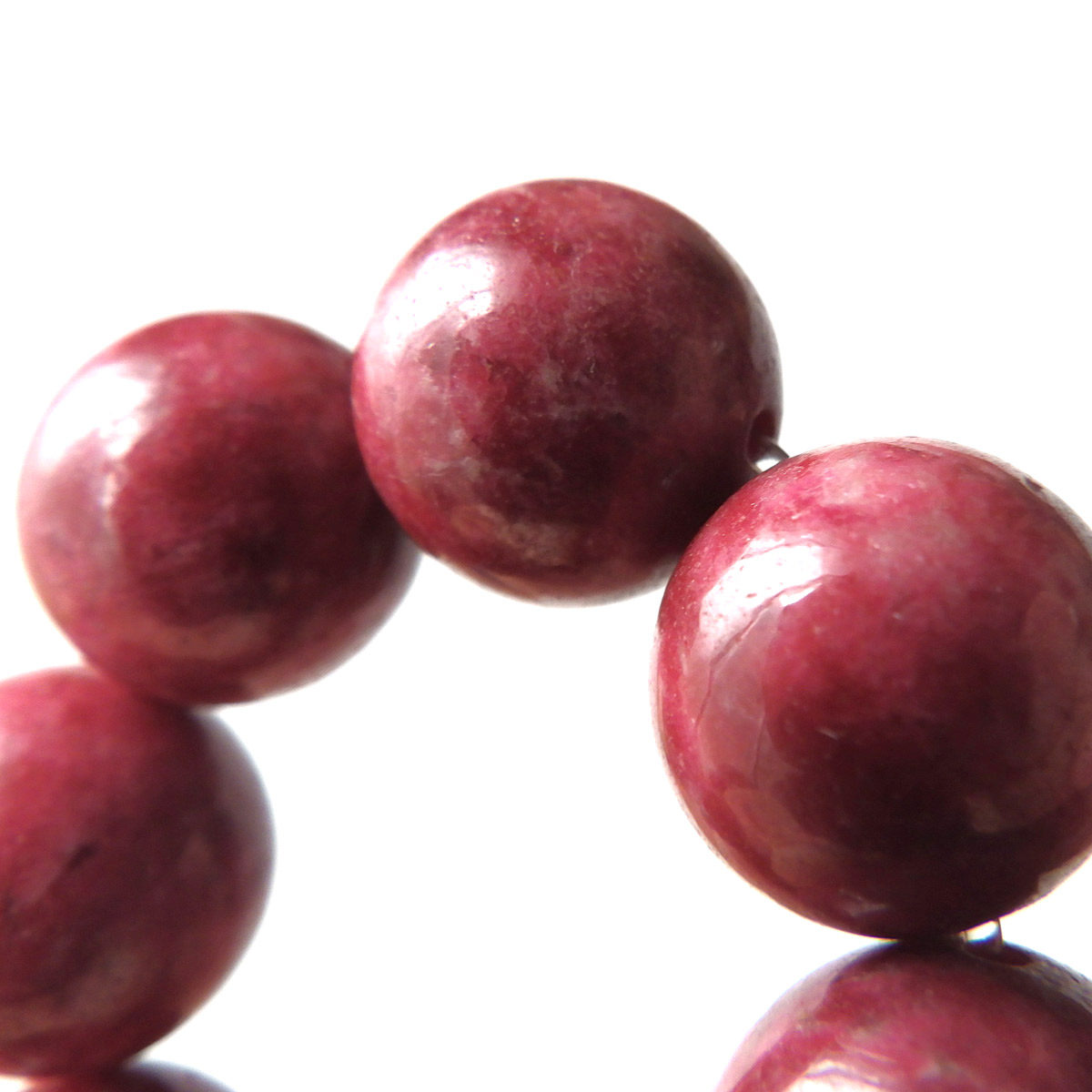 ノルウェー産チューライト、ブレスレットです。赤みの発色の良い高品質なチューライトです。チューライトは、ノルウェーなど、限られた地域のみで産出される、希少な石です。タンザナイト等も含まれるゾイサイトグループのバリエーションの一つで、その中でもピンク~赤色をしているものをさします。緑色をしているものは「アニョライト」、青色をしているものは「タンザナイト」と分類されます。その赤色の発色は、含まれる鉄とマンガンに起因しています。