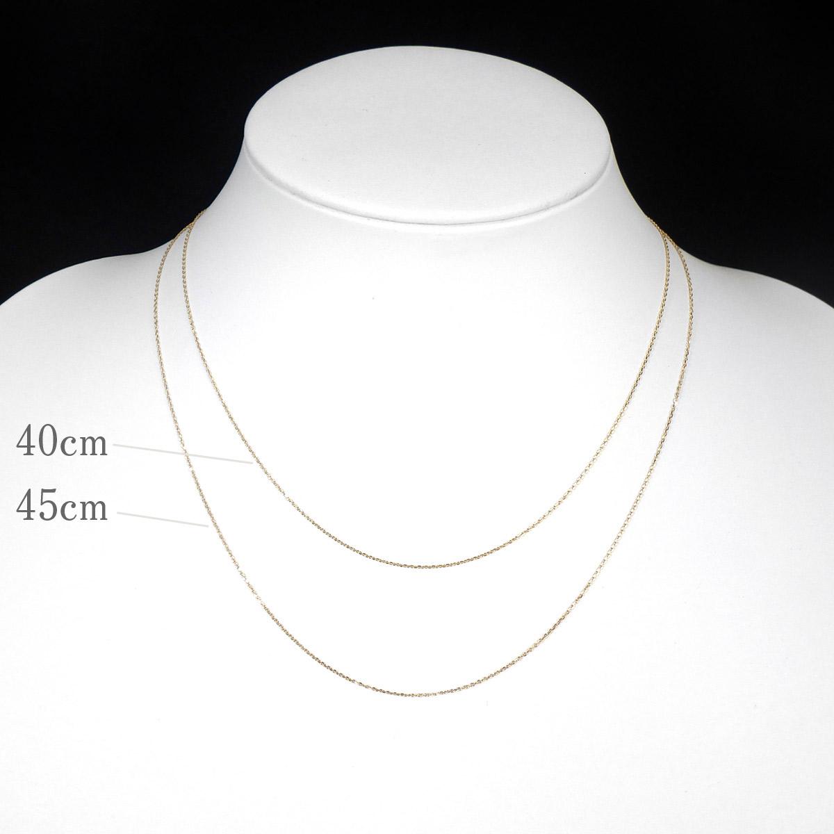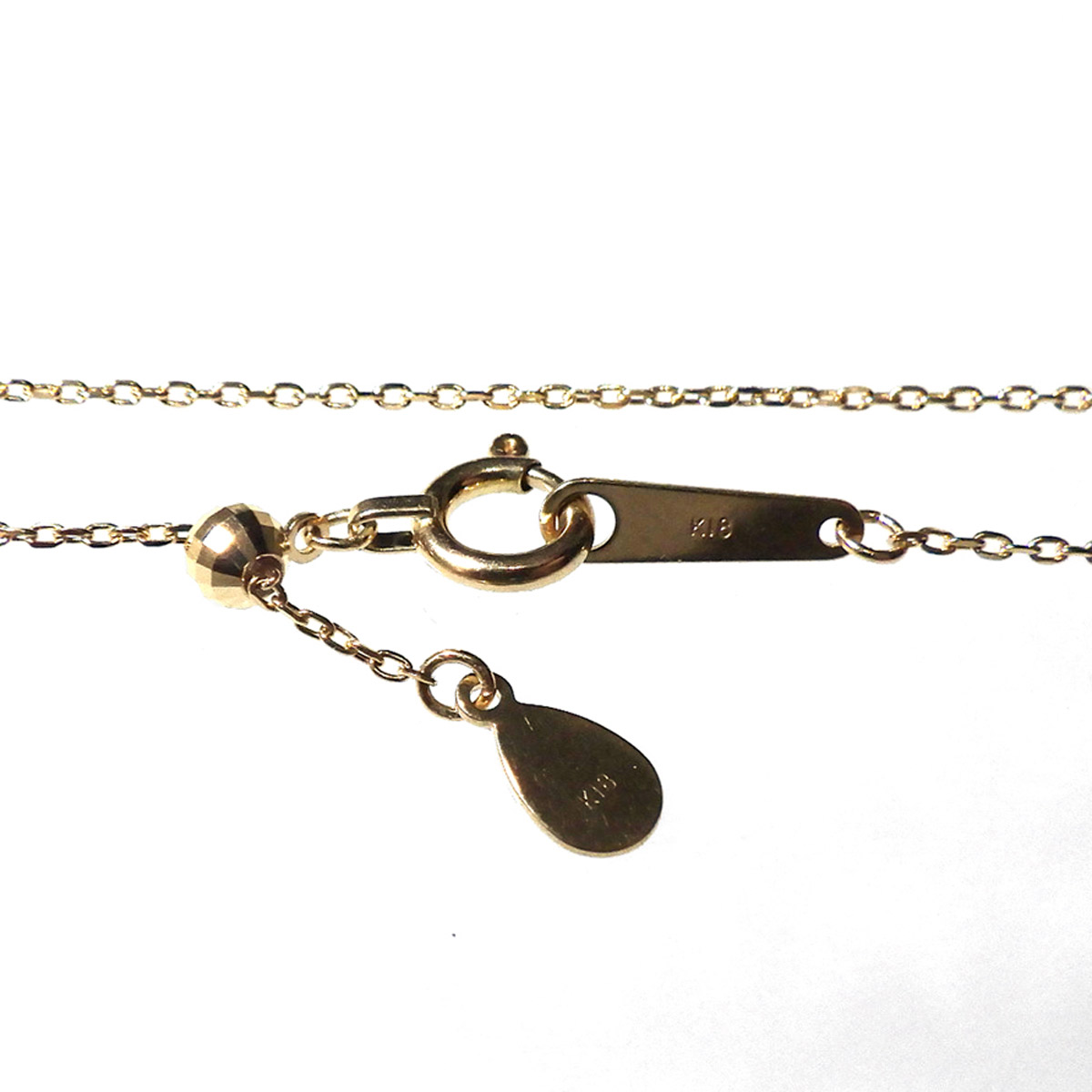 K18製のスネークチェーンです。横幅1.0mmと細見で、長さは最大が40cmと45cmのものをご用意しております。またスライドボールで短く調節できます。ボール部分をしっかりと持って引っ張っていただくだけで長さの調節ができます。主役のペンダントトップを引き立ててくれるチェーンで、日常で活躍してくれると思います。