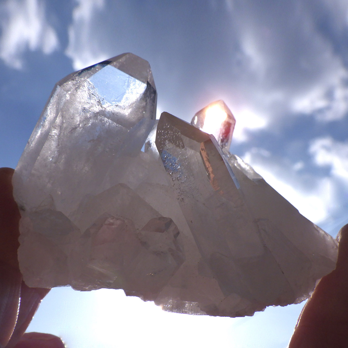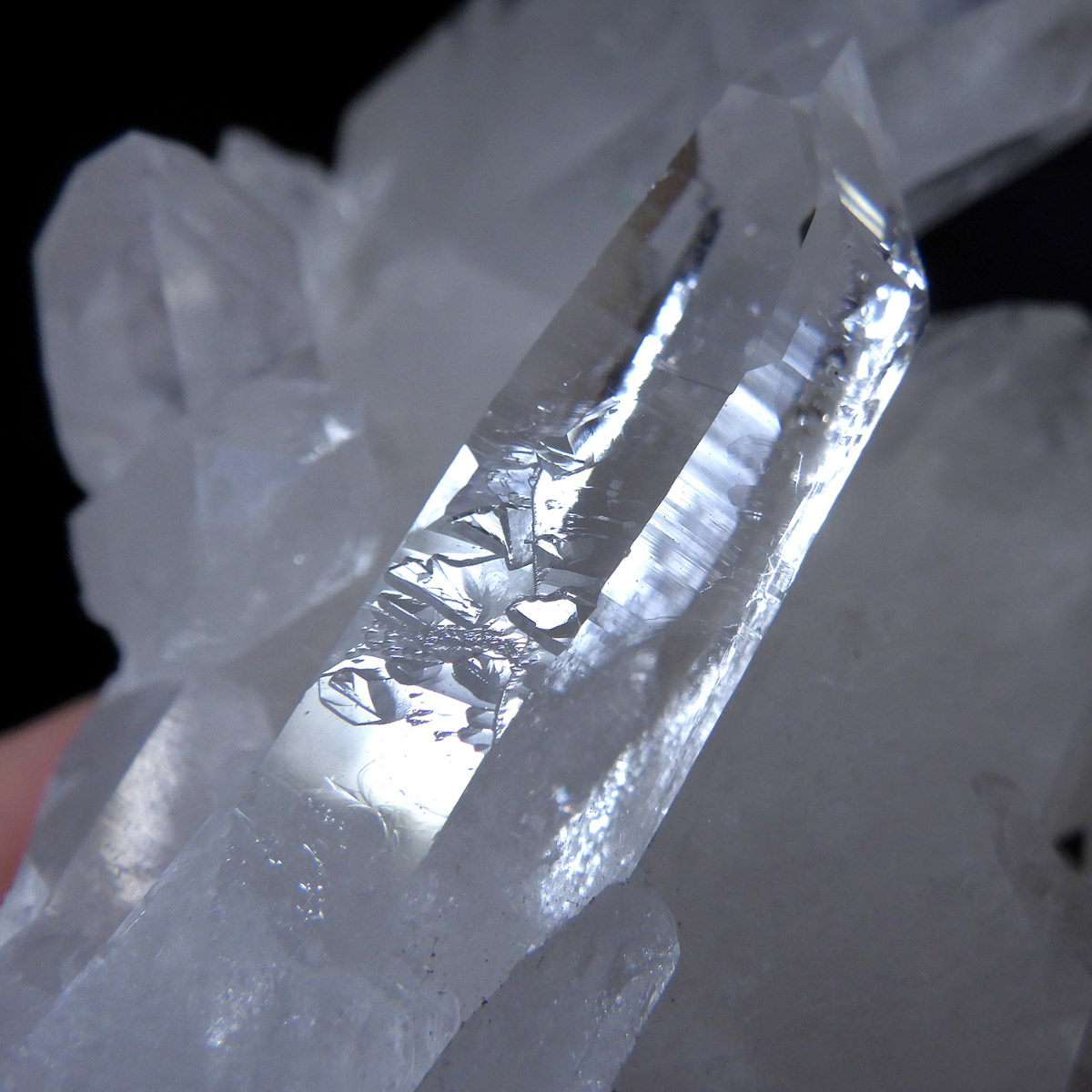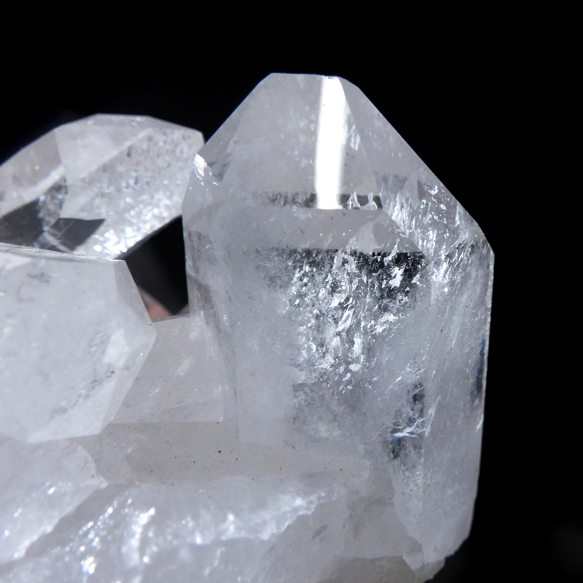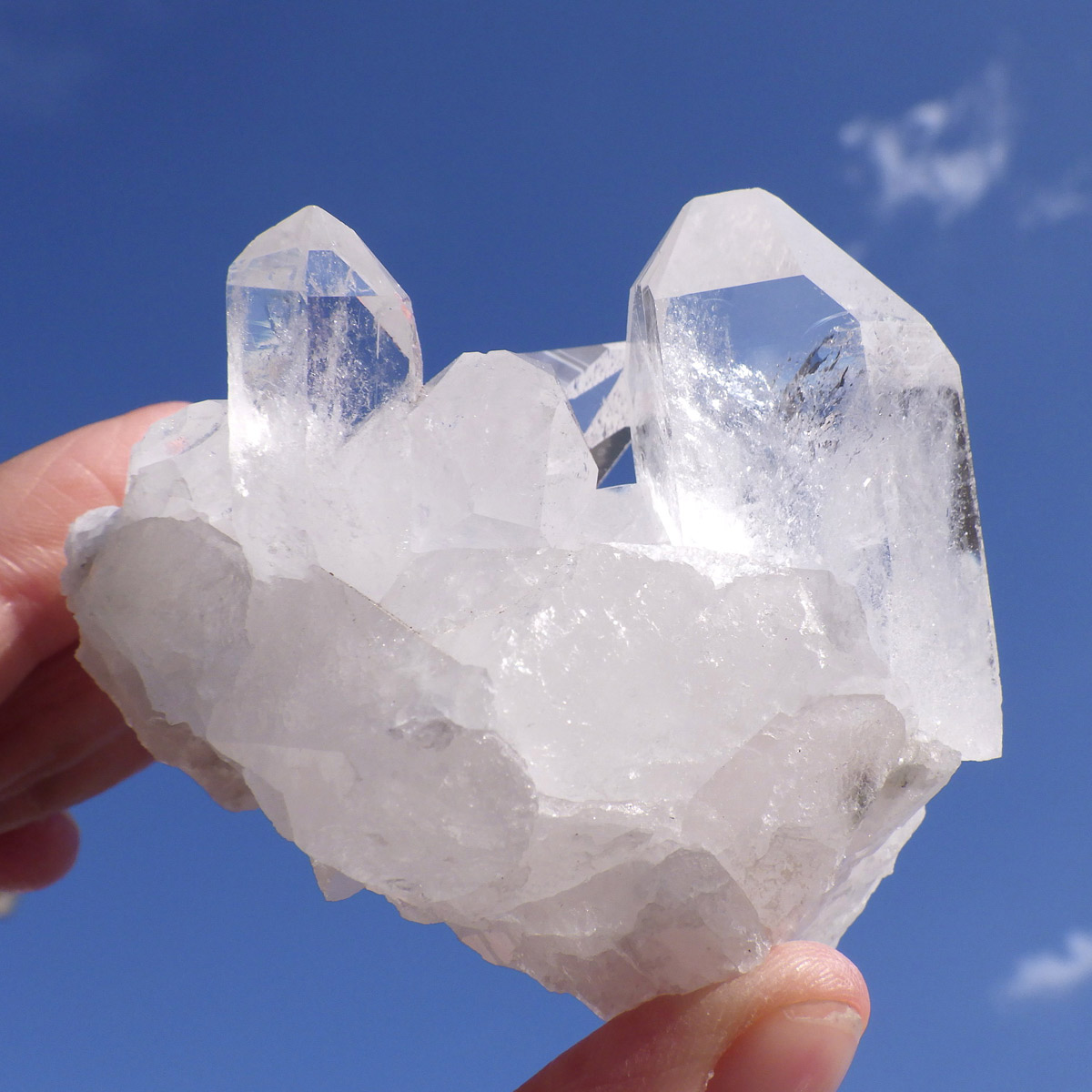 ブラジル トマスゴンサガ産 の水晶クラスターです。トマスゴンサガ産の水晶の特徴は、照りと艶。 光沢が強いため、驚くほどキラキラとしています。 また、水晶柱が放射線状に伸びて立体的な構造を作っているものが多く、「これぞ、水晶クラスター」という形状をしています。 非常に透明度の高い大小様々な結晶が複雑に絡み合い、見る角度によって様々な表情を見せる大変美しいクラスターです。