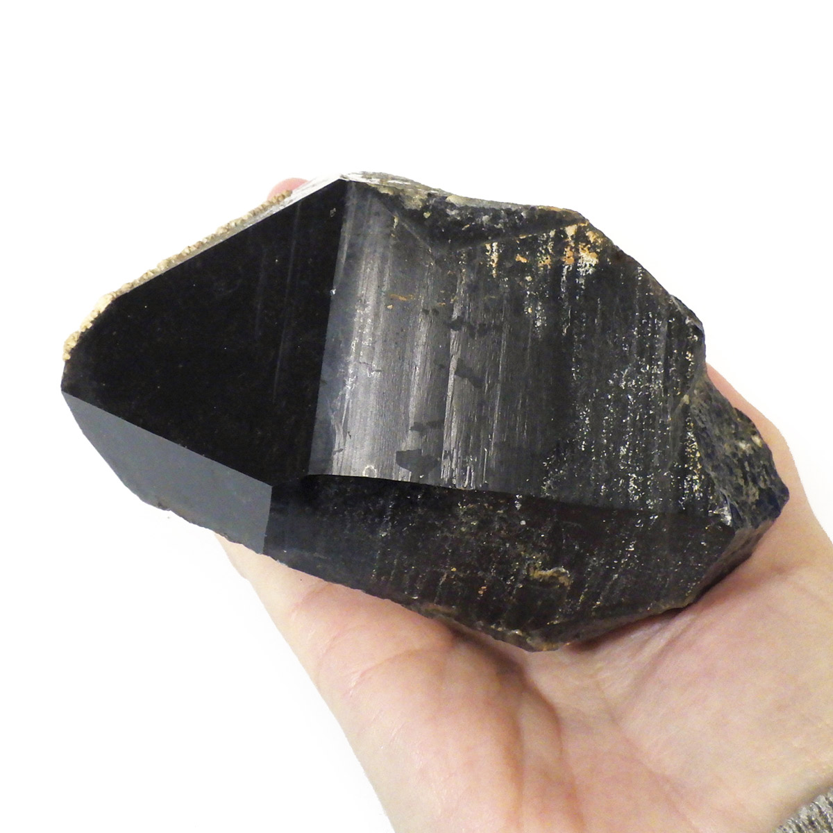 有数の産地、中国 山東省産のモリオン 原石です。 水晶の変種の中で、光を通さない真っ黒な黒水晶をモリオンと呼びます。自然の放射能の影響で黒色に変色したと言われています。