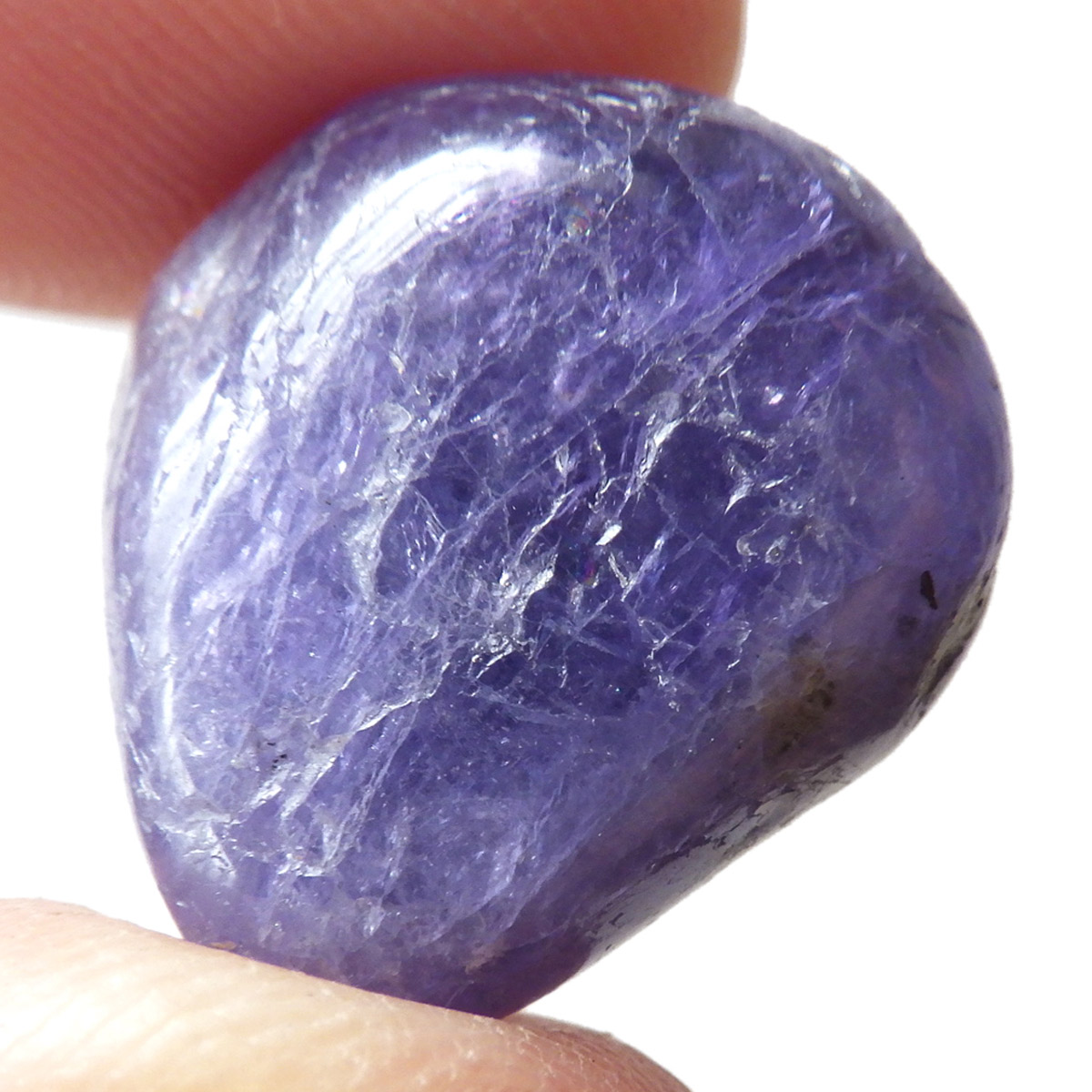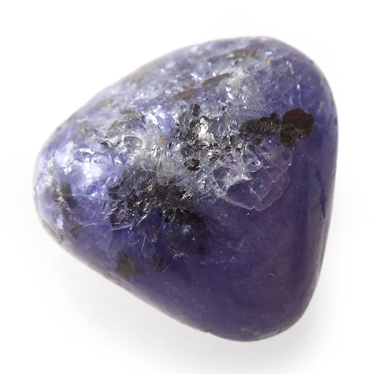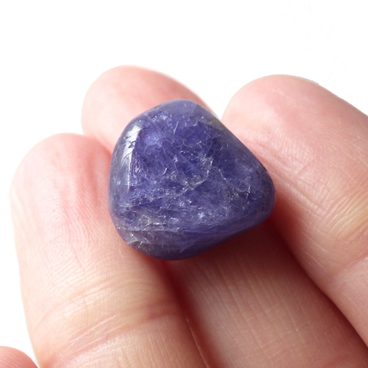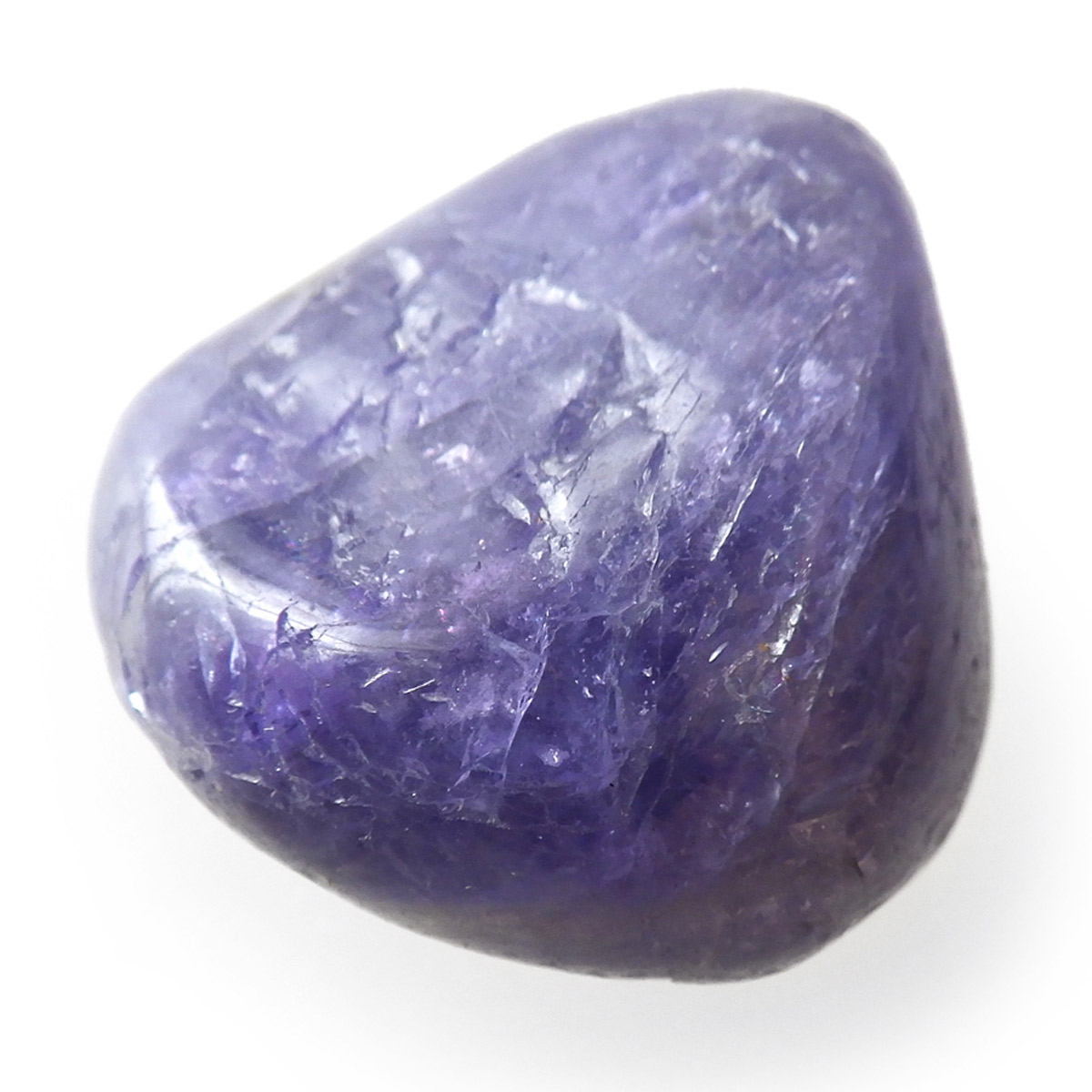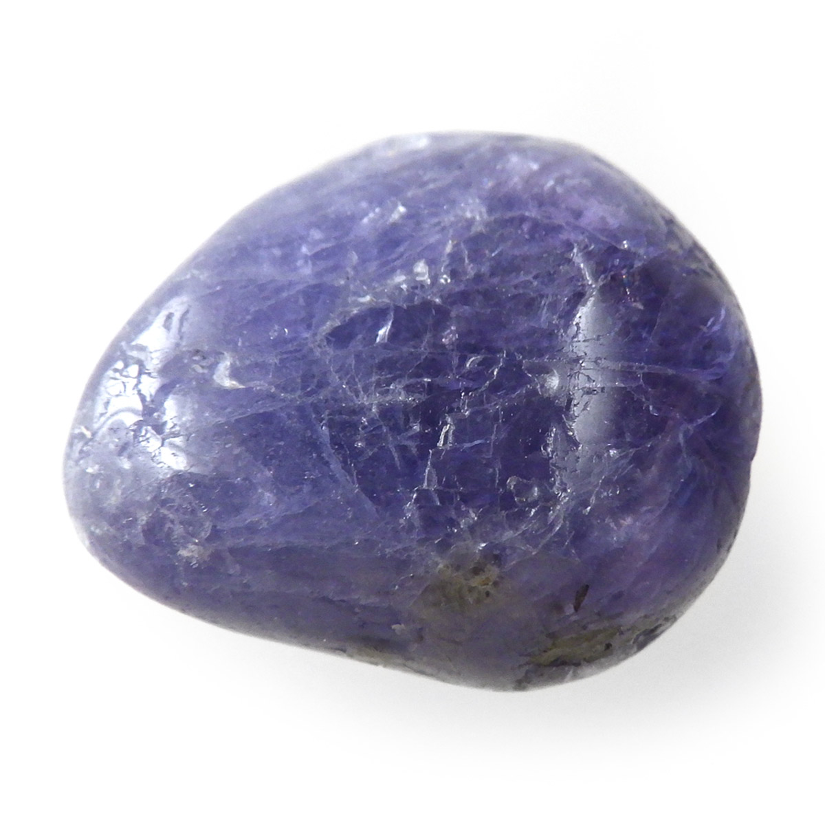 タンザニア産のタンザナイト、タンブルです。タンザナイトの和名は灰簾石。ゾイサイトグループのバリエーションの一つで、ピンク~赤色をしているものは「チューライト」、緑色をしているものは「アニョライト」、青色をしているものは「タンザナイト」と分類されます。タンザナイトは多色性という性質を持っており、見る角度によって青色や紫色が強くなるように表情が見られます。色は青から青紫でタンザナイトならではの魅力的な色彩。他にはないカラーが人気の天然石で、12月の誕生石とされています。
