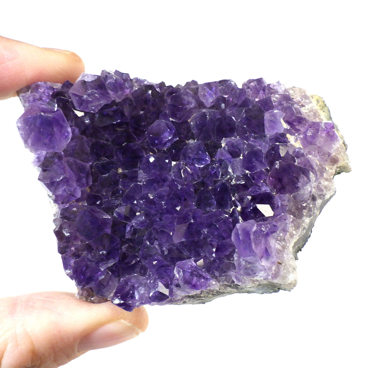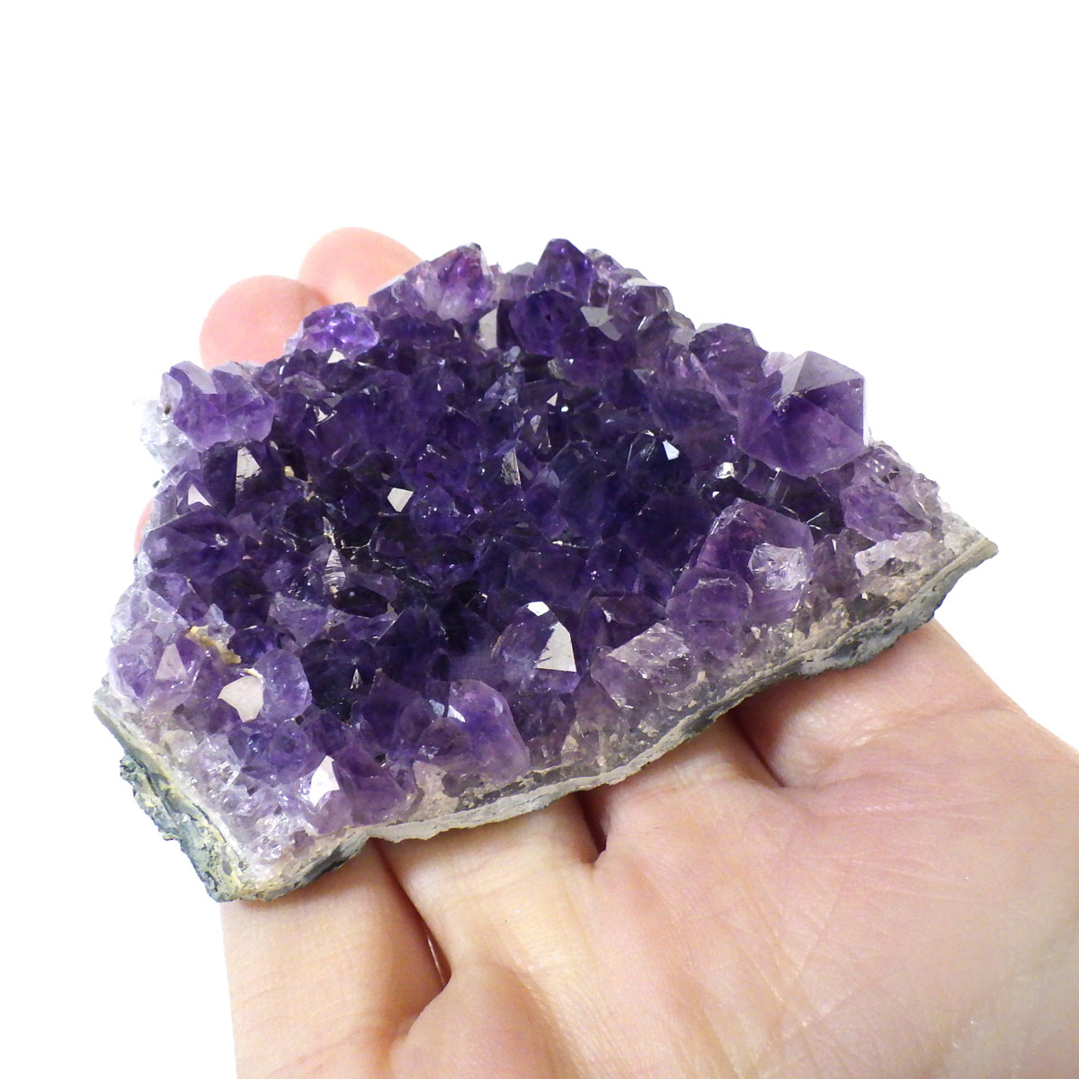 ブラジル産のアメジストクラスターです。一つ一つの結晶が美しく成長したアメジストです。透明感があり、上質なアメジストの証である紫の色がしっかりと入った濃紫のクラスターです。