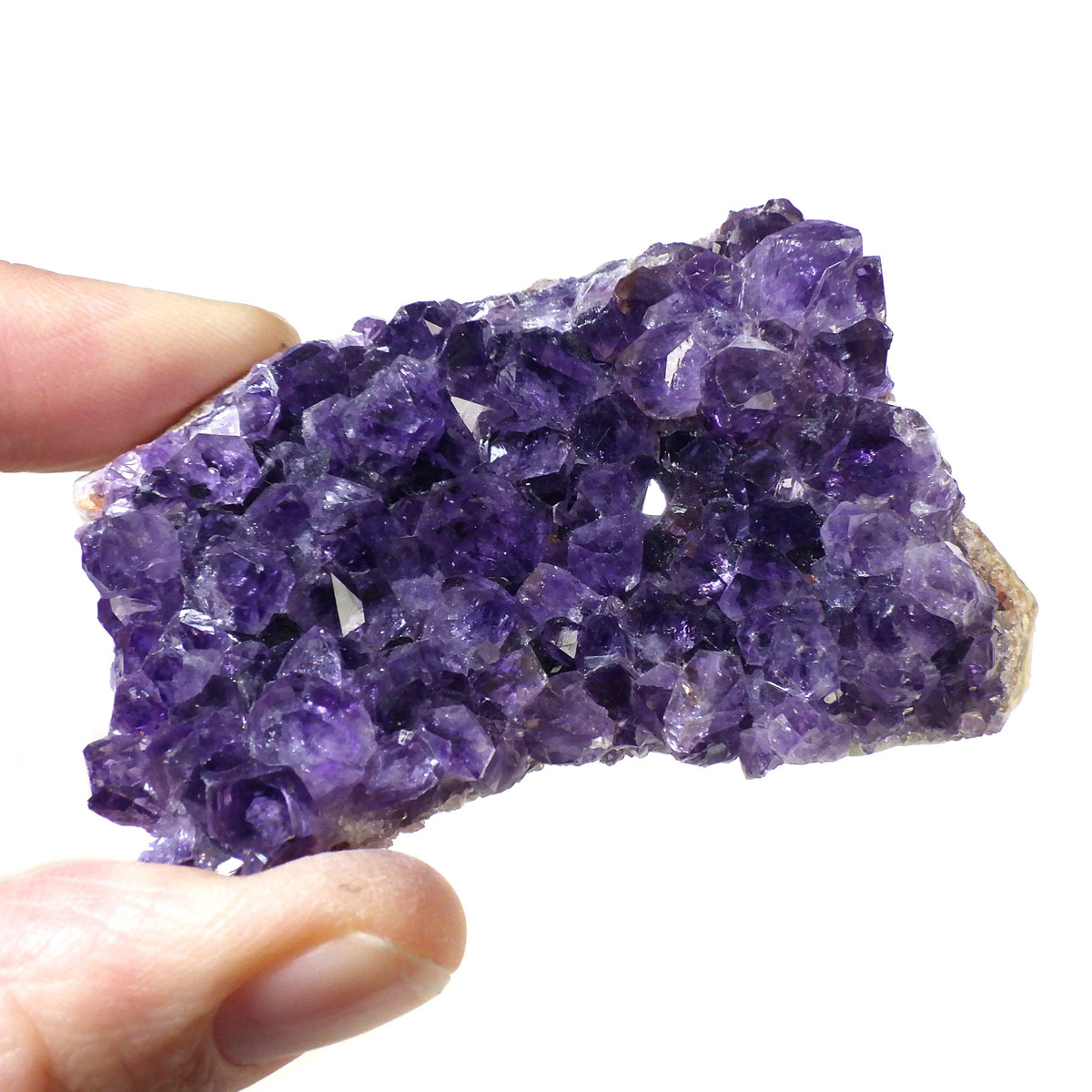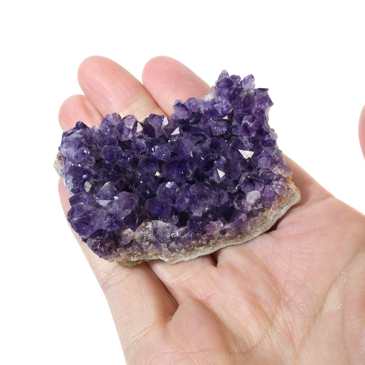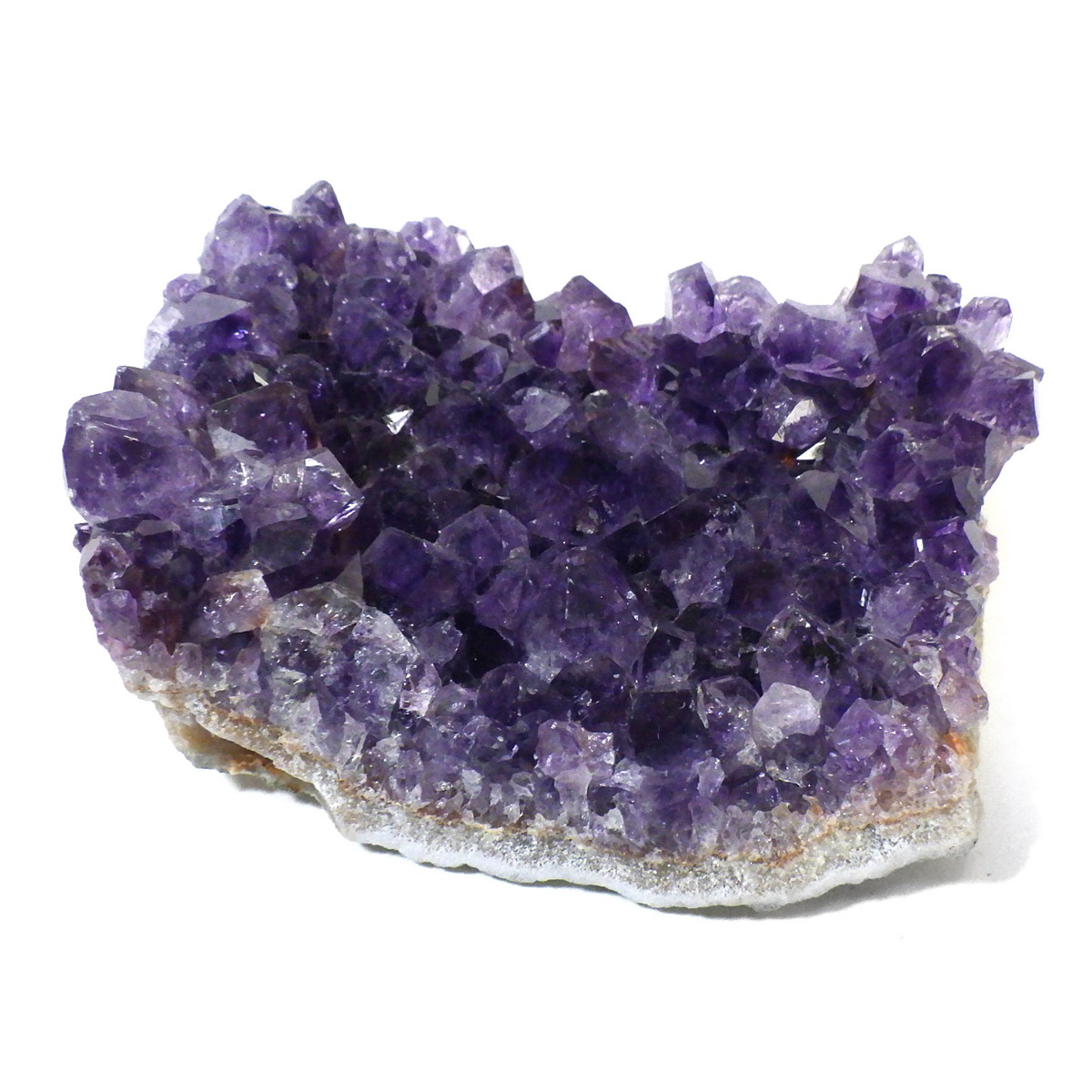 ブラジル産のアメジストクラスターです。一つ一つの結晶が美しく成長したアメジストです。透明感があり、上質なアメジストの証である紫の色がしっかりと入った濃紫のクラスターです。
