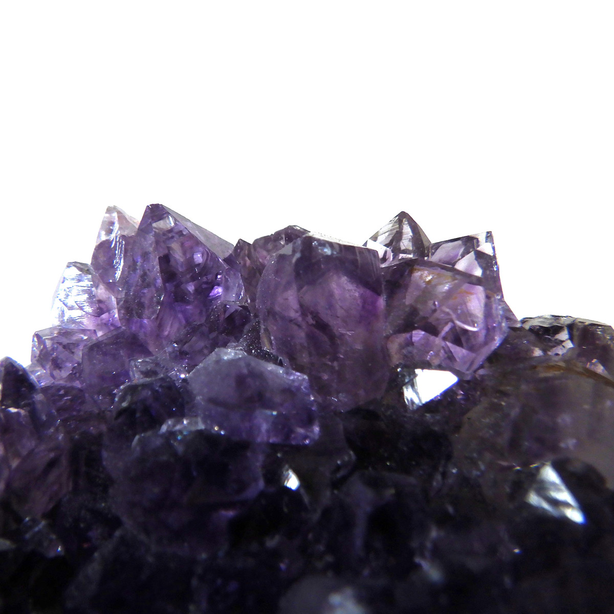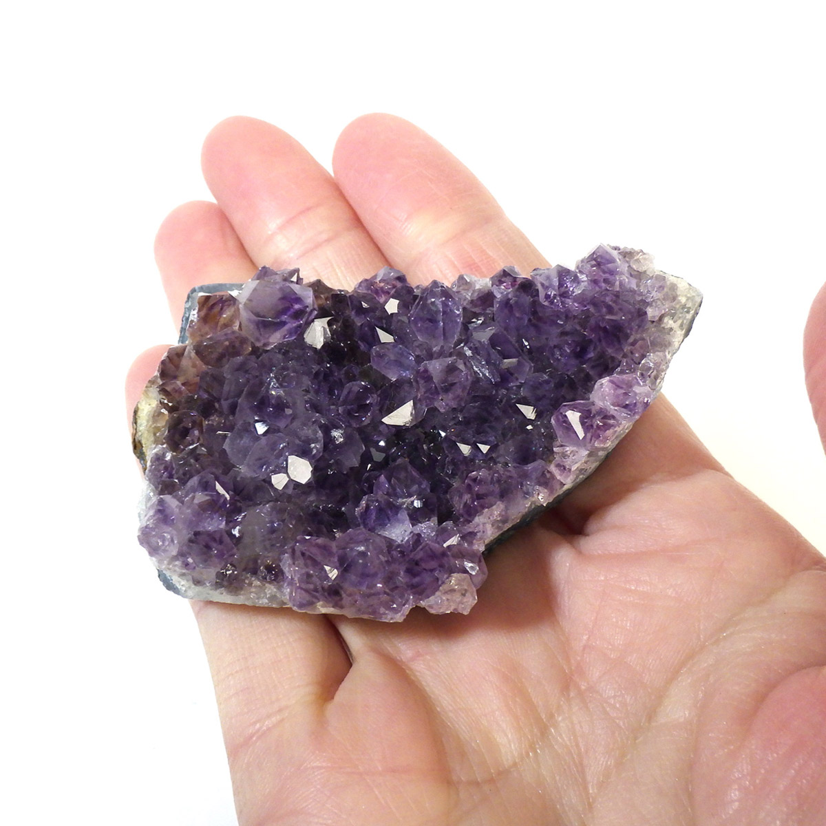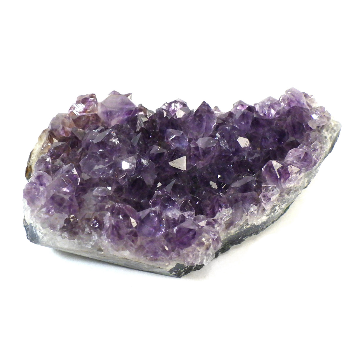 ブラジル産のアメジストクラスターです。一つ一つの結晶が美しく成長したアメジストです。透明感があり、上質なアメジストの証である紫の色がしっかりと入った濃紫のクラスターです。
