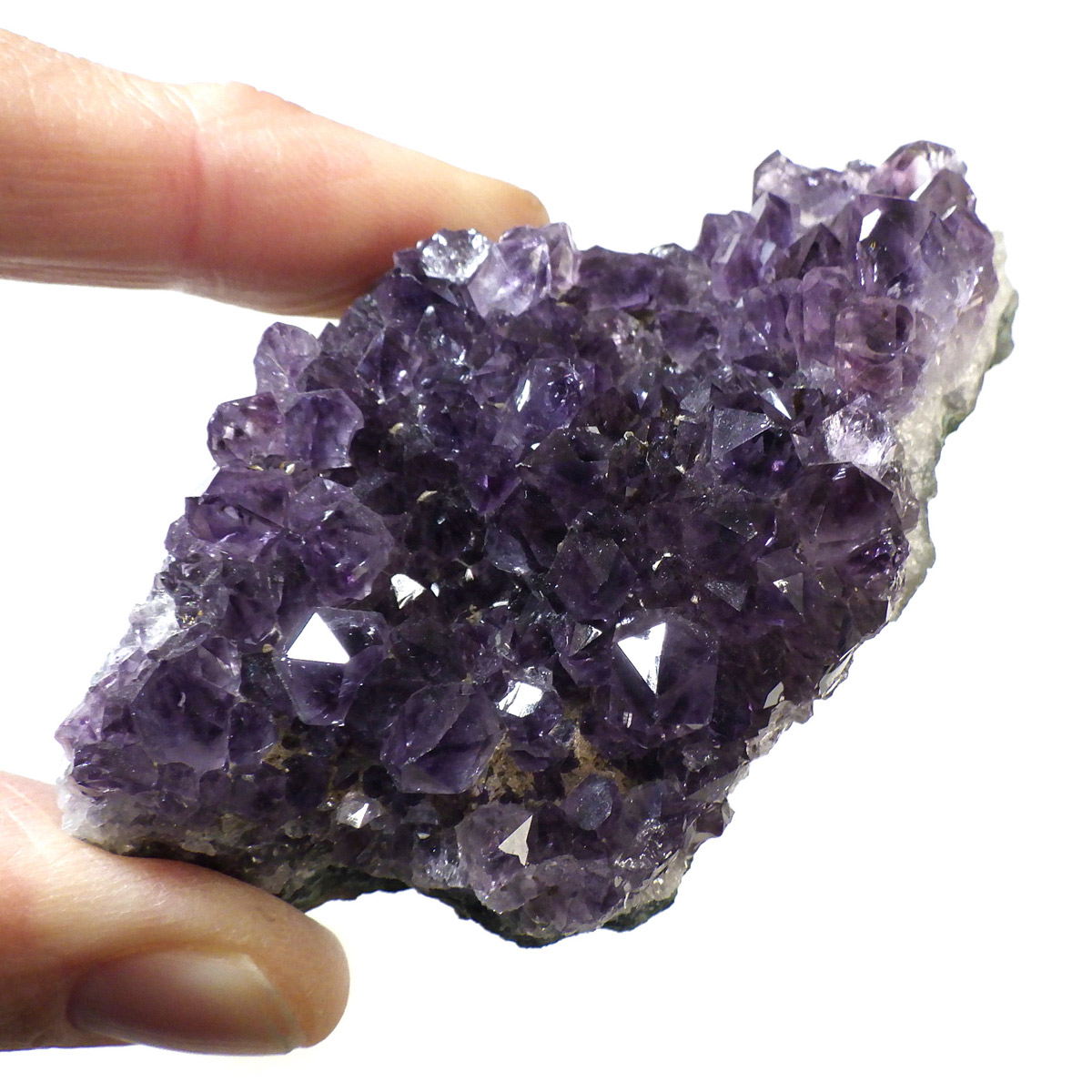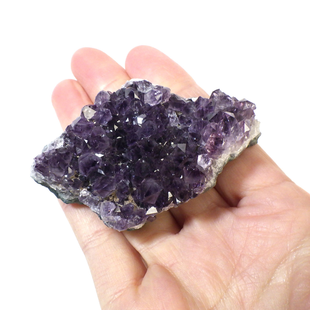ブラジル産のアメジストクラスターです。一つ一つの結晶が美しく成長したアメジストです。透明感があり、上質なアメジストの証である紫の色がしっかりと入った濃紫のクラスターです。