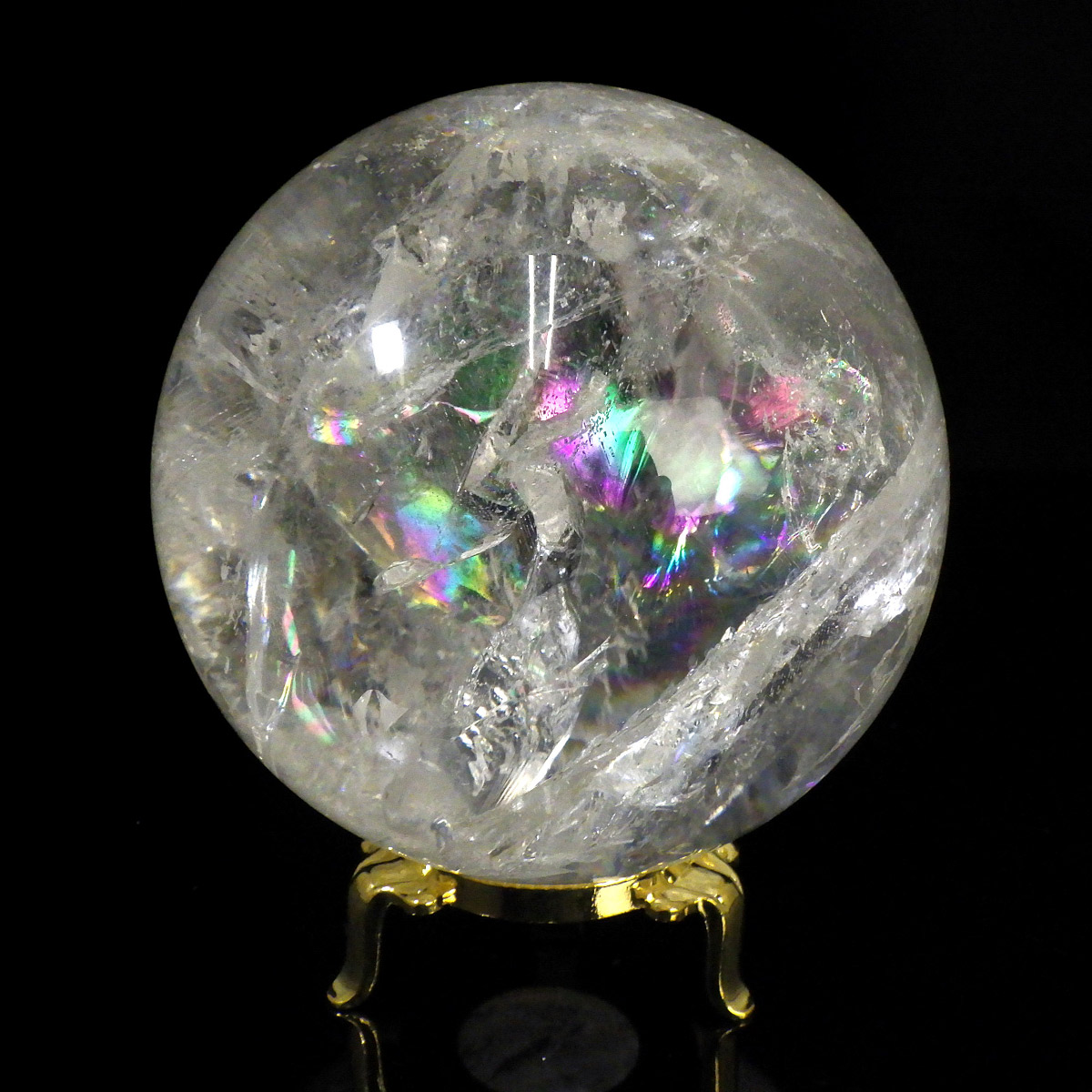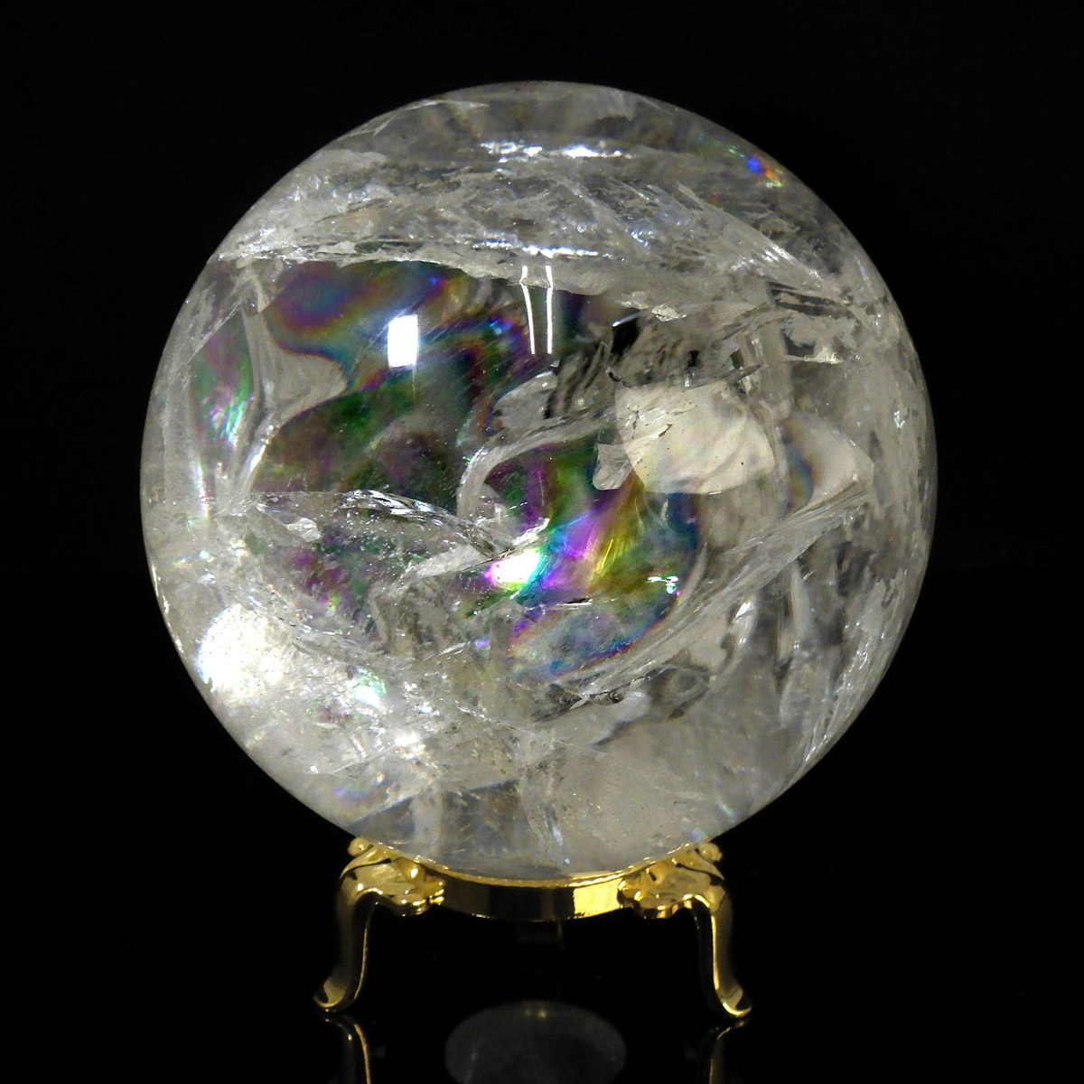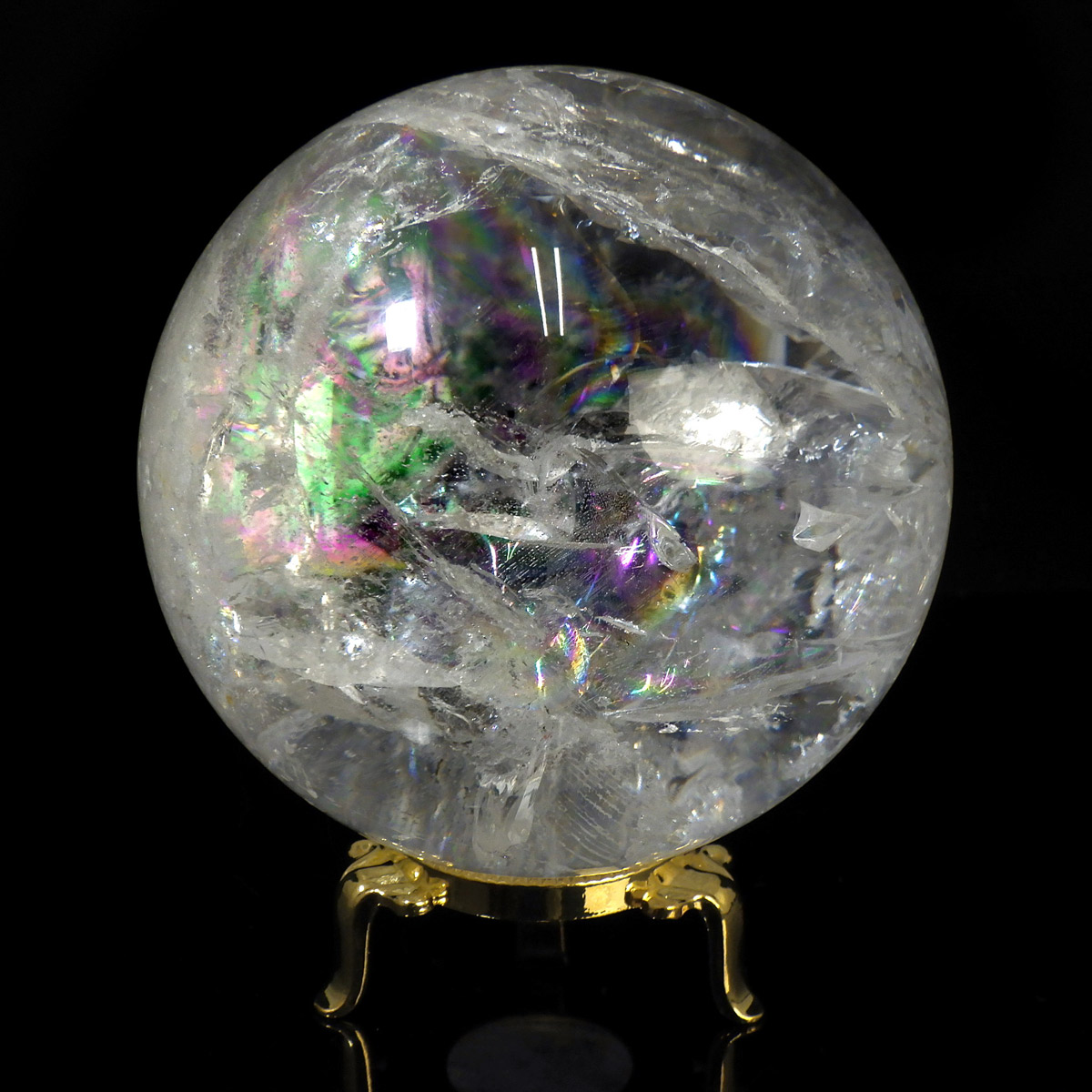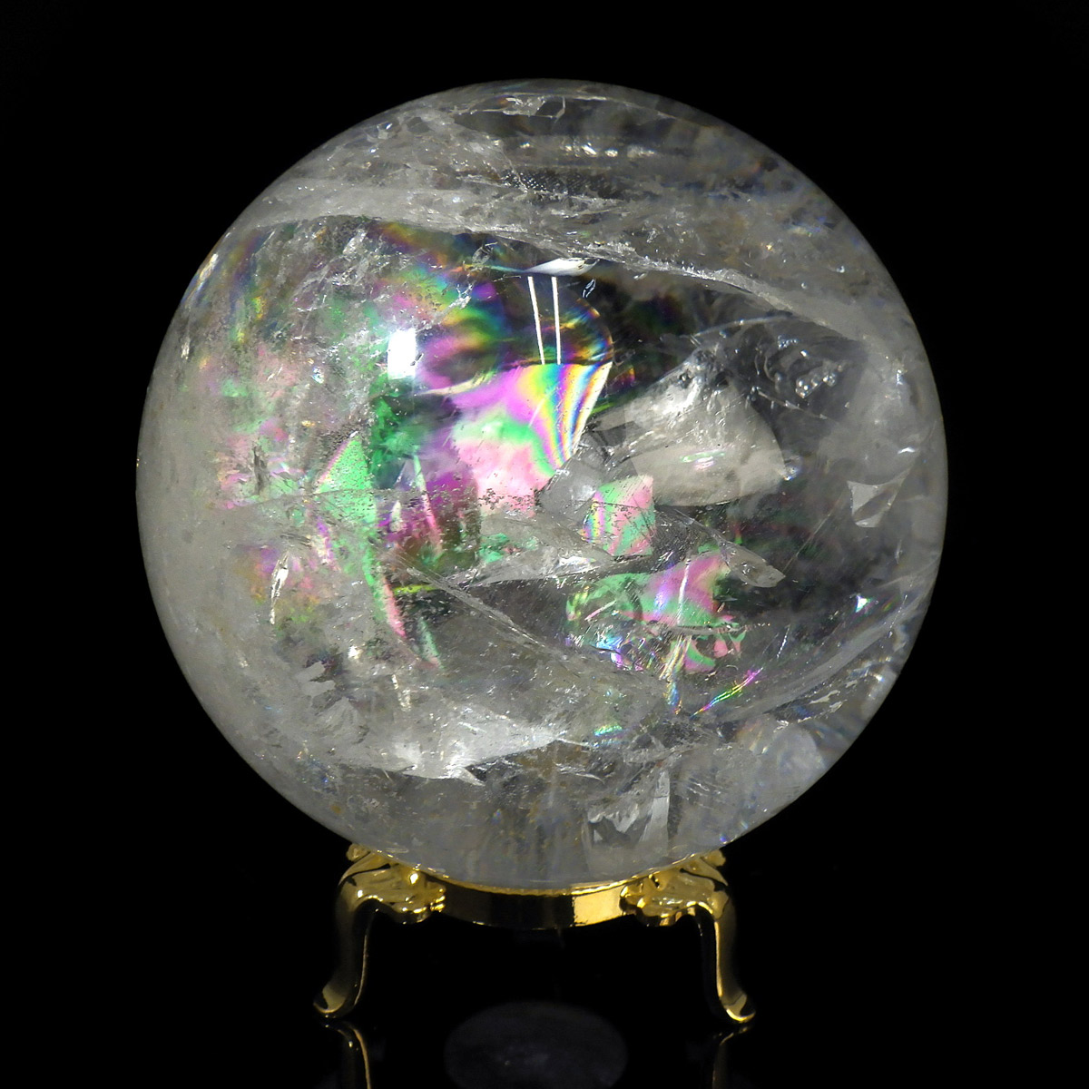 レムリアン水晶球 直径96mm 丸玉 スフィア ブラジル・ミナスジェライス州産 金属製台・木製台付き