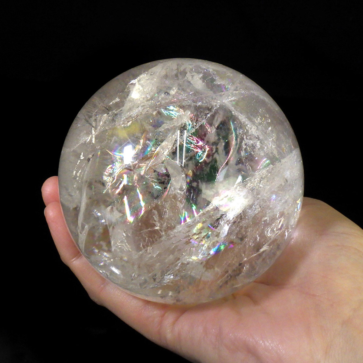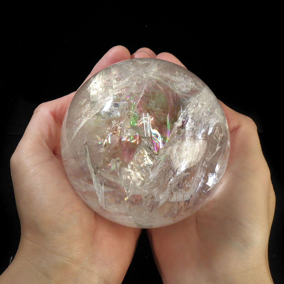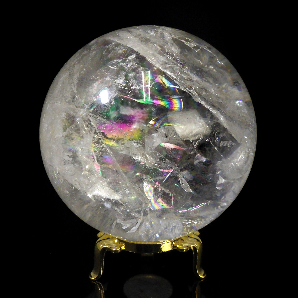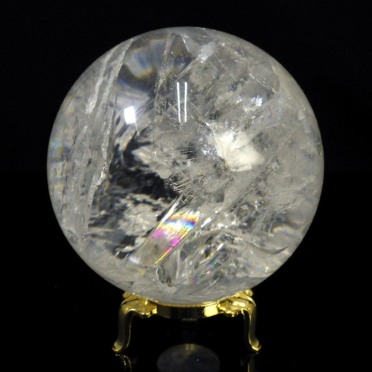 レムリアン水晶球 直径96mm 丸玉 スフィア ブラジル・ミナスジェライス州産 金属製台・木製台付き