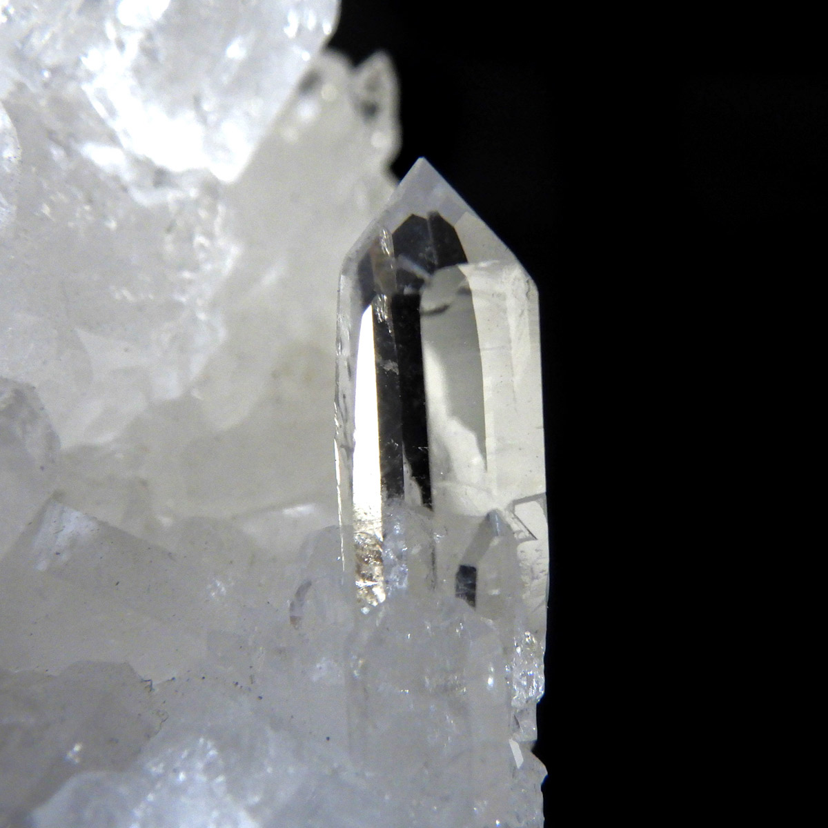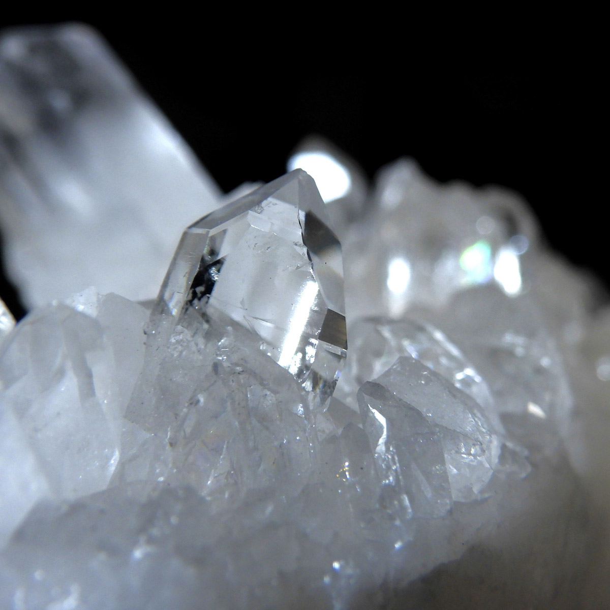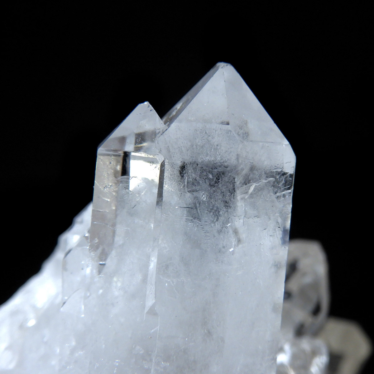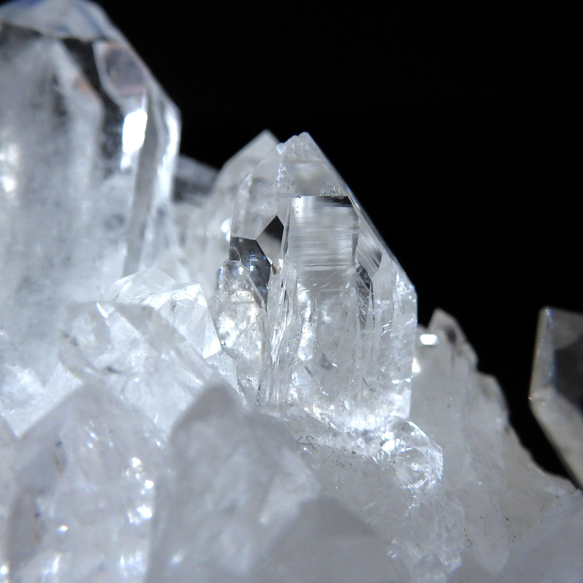 ブラジル トマスゴンサガ産 の水晶クラスターです。トマスゴンサガ産の水晶の特徴は、照りと艶。 光沢が強いため、驚くほどキラキラとしています。 また、水晶柱が放射線状に伸びて立体的な構造を作っているものが多く、「これぞ、水晶クラスター」という形状をしています。 非常に透明度の高い大小様々な結晶が複雑に絡み合い、見る角度によって様々な表情を見せる大変美しいクラスターです。