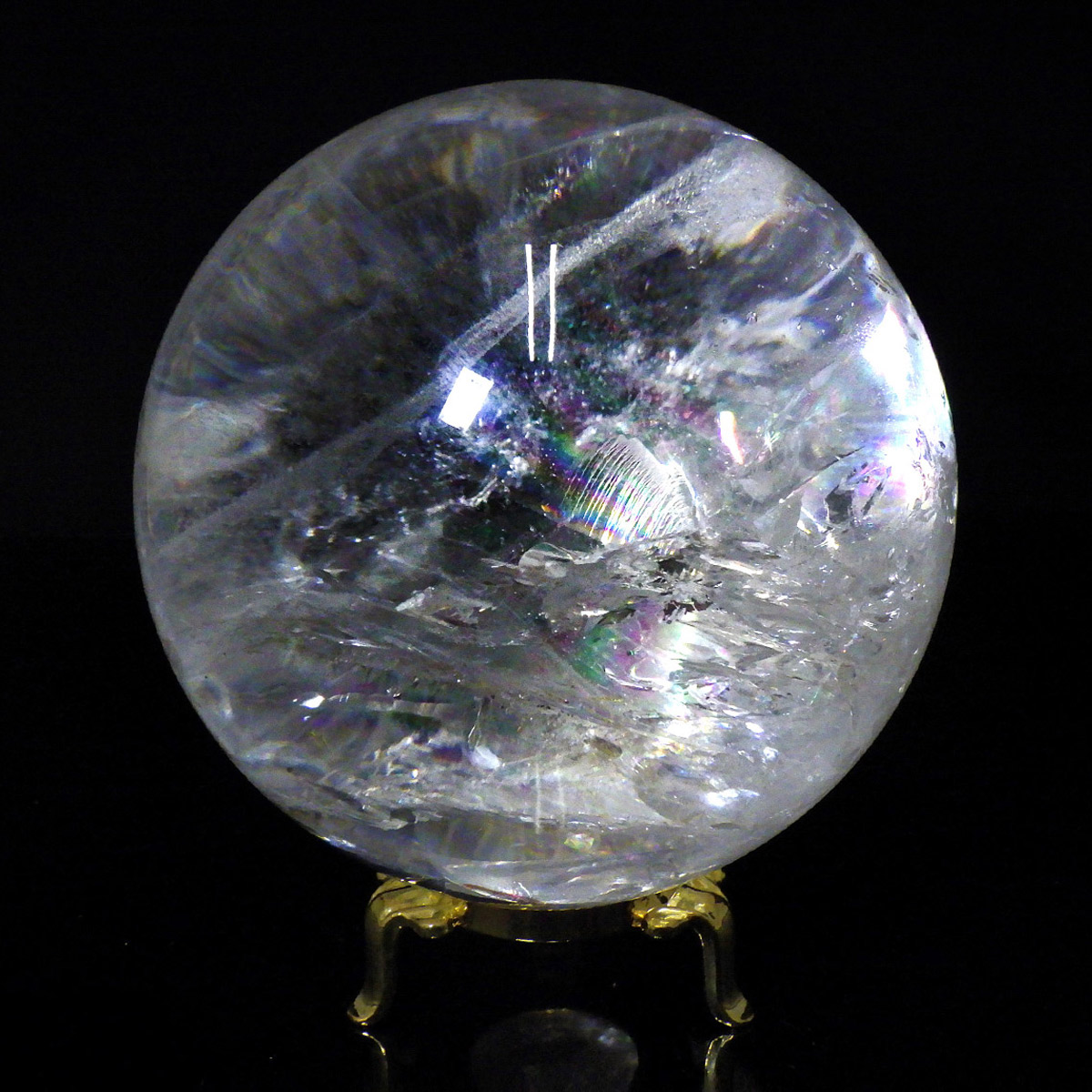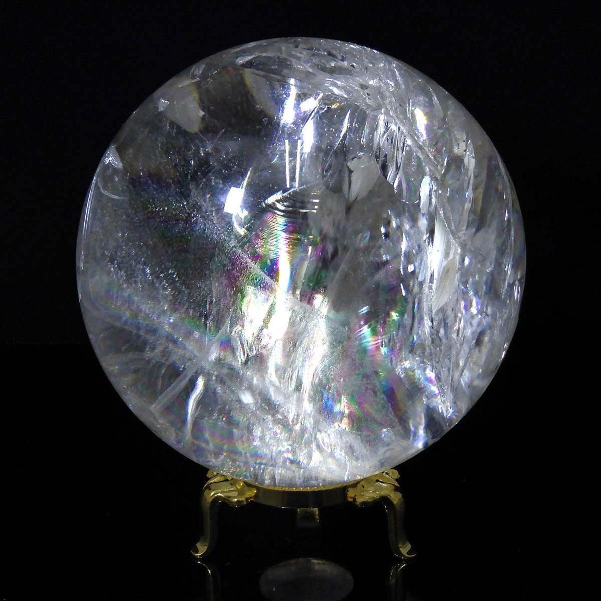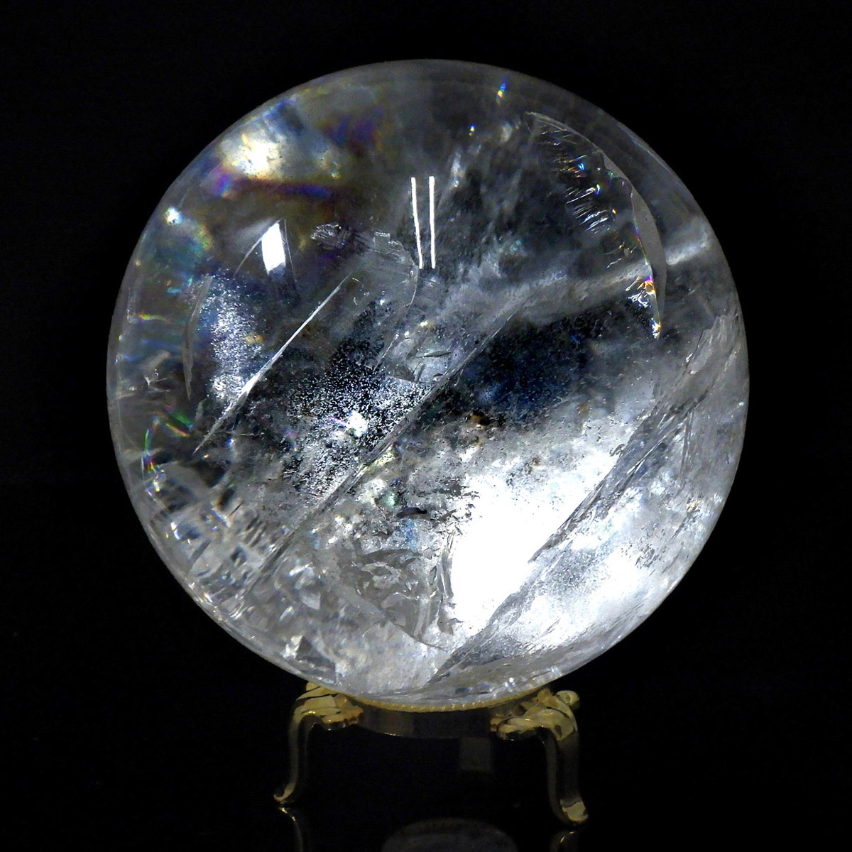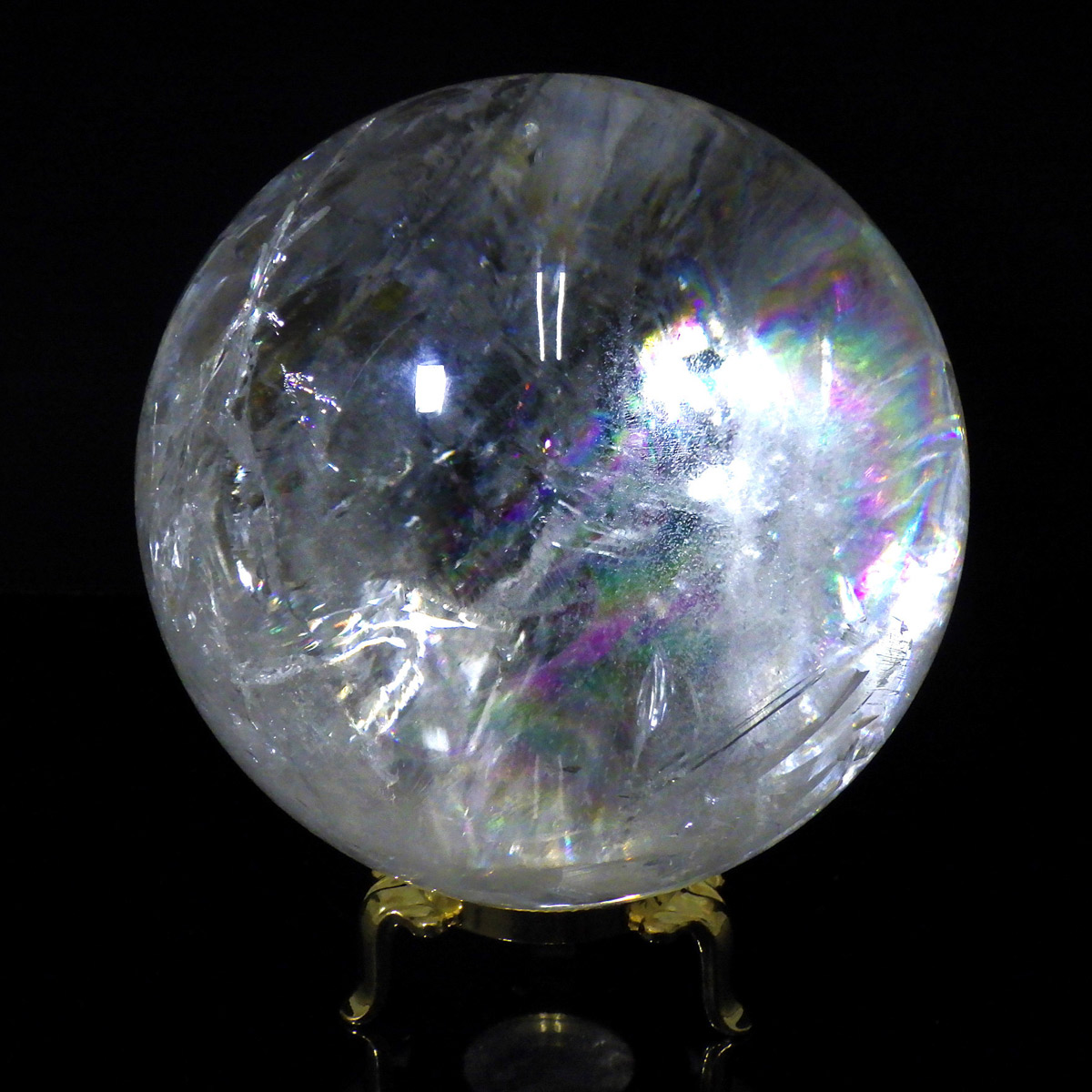 水晶球 直径110mm 丸玉 スフィア ブラジル産 金属製台・木製台付き