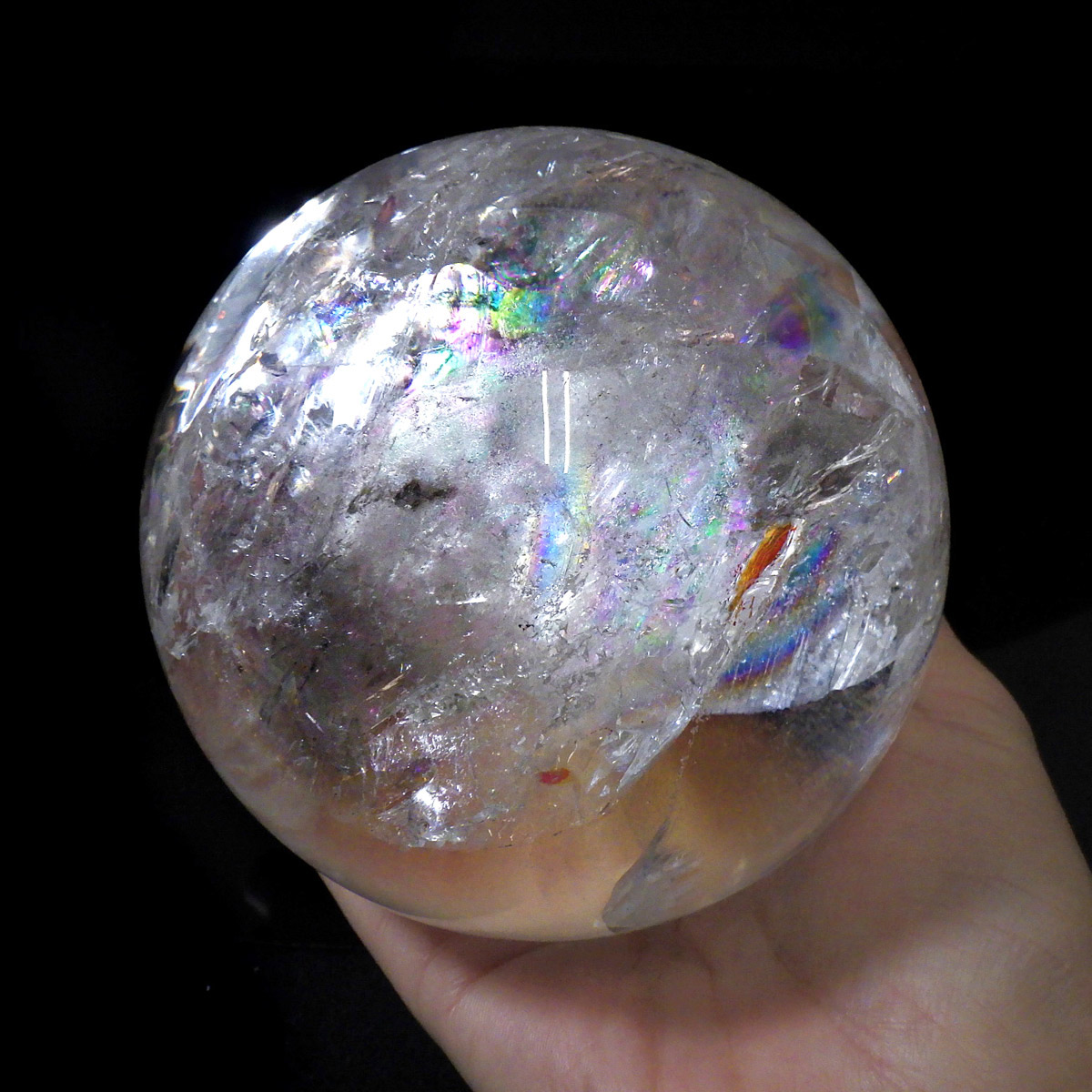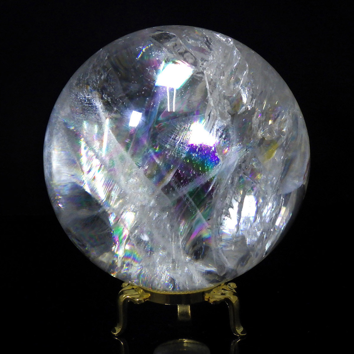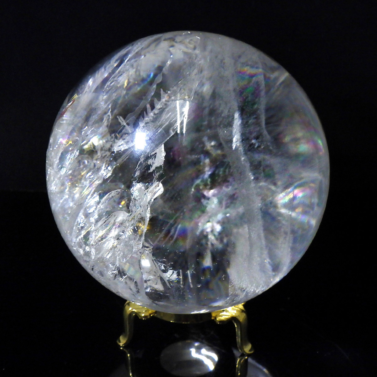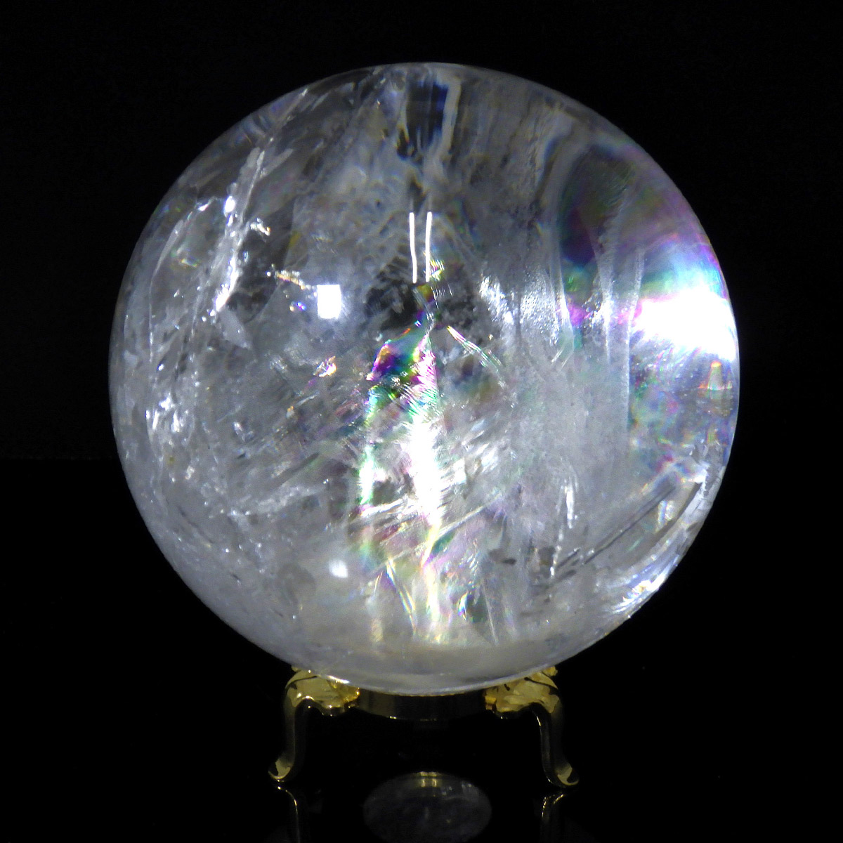 水晶球 直径110mm 丸玉 スフィア ブラジル産 金属製台・木製台付き