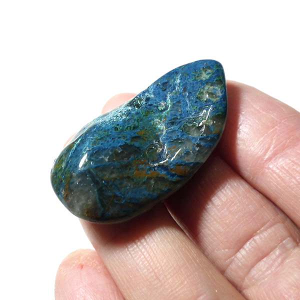 クリソコラは、何事に対してもしっかりと地に足を着けた実りあるものになるような生活ができるよう、サポートしてくれる石とされています。仕事や恋愛、幸せな家庭生活や安産のお守りとしても人気です。また、生活リズムを正しく整えてくれる作用もあり、心身のバランスを整えてストレスを吸収し、情緒を安定させてくれるといわれています。体からマイナスエネルギーを抜いてくれる石でもあるので、健康のお守りとしてもオススメです。