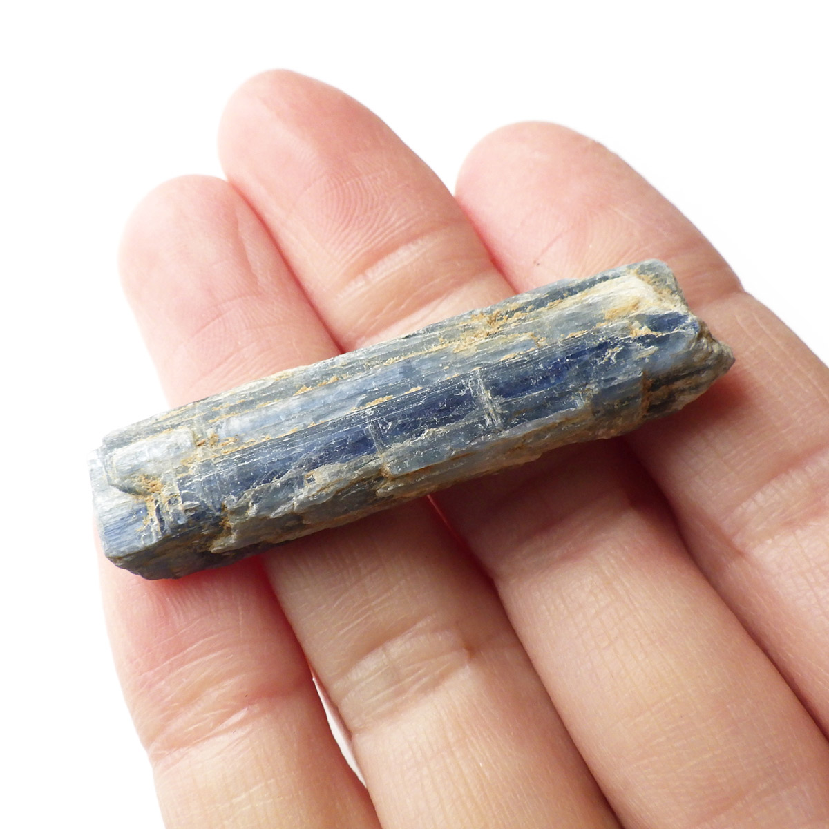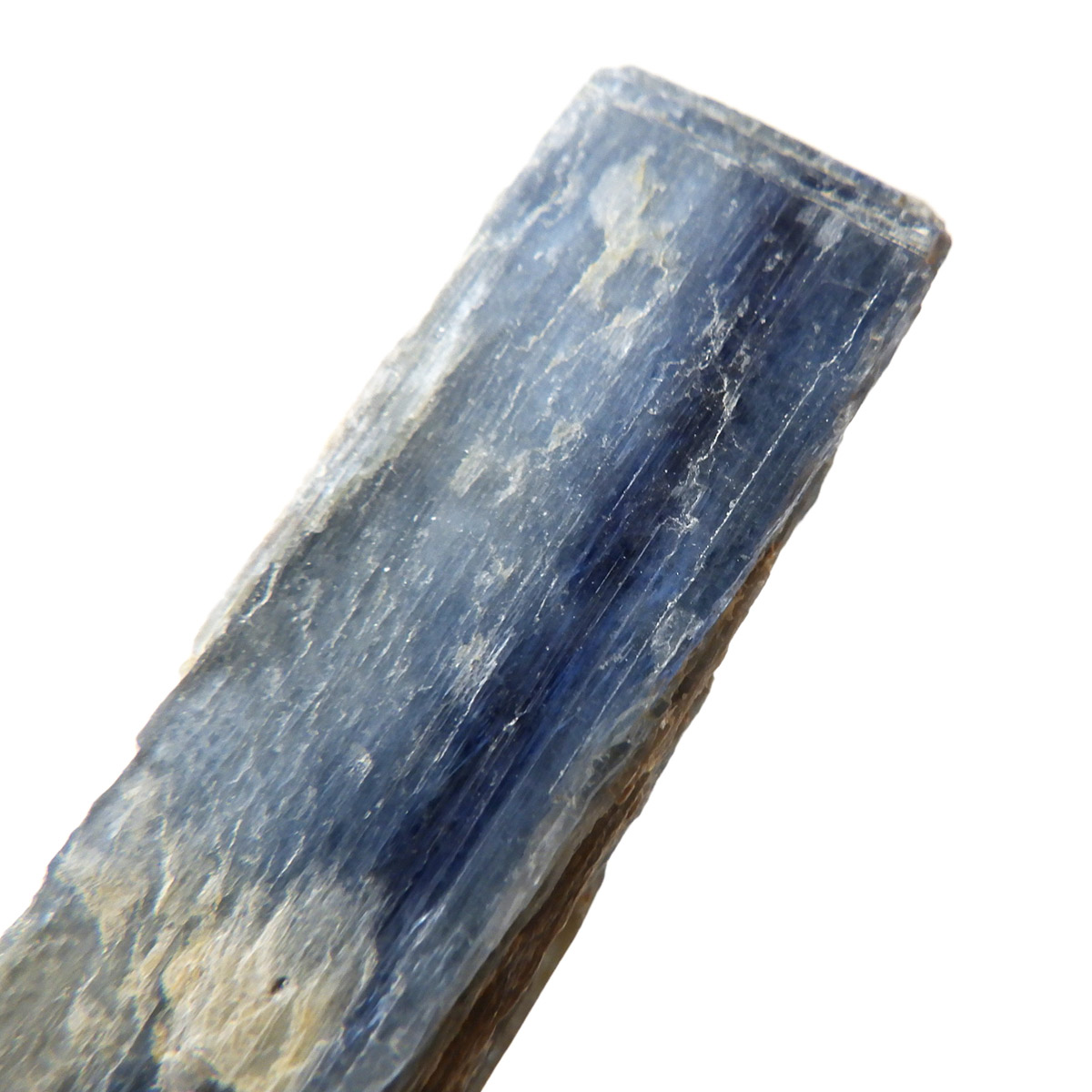 ブラジル産のカイヤナイト原石です。カイヤナイトはブルーと光沢がきれいな人気の鉱物です。柱状に伸びる結晶がうっとりする美しさを持っています。角度を変えると光を反射し、キラキラとした輝きが、これまた美しいです。