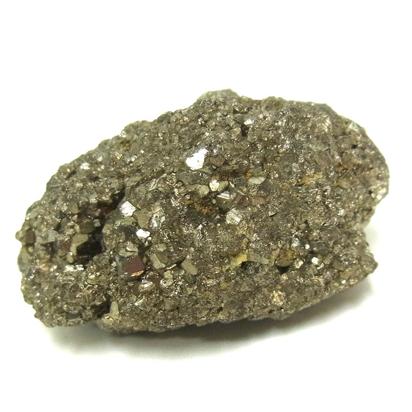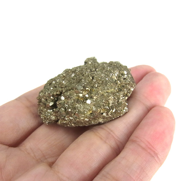 ペルー産のパイライト原石です。コロッとかわいらしいサイズでキラキラが信じられないほどまぶしい原石。パイライトは、火山活動の活発な場所で生成されます。結晶は大変整った六面体や八面体です。金と間違えるほどのゴールドで、硫黄と鉄で構成された鉱物の一種です。