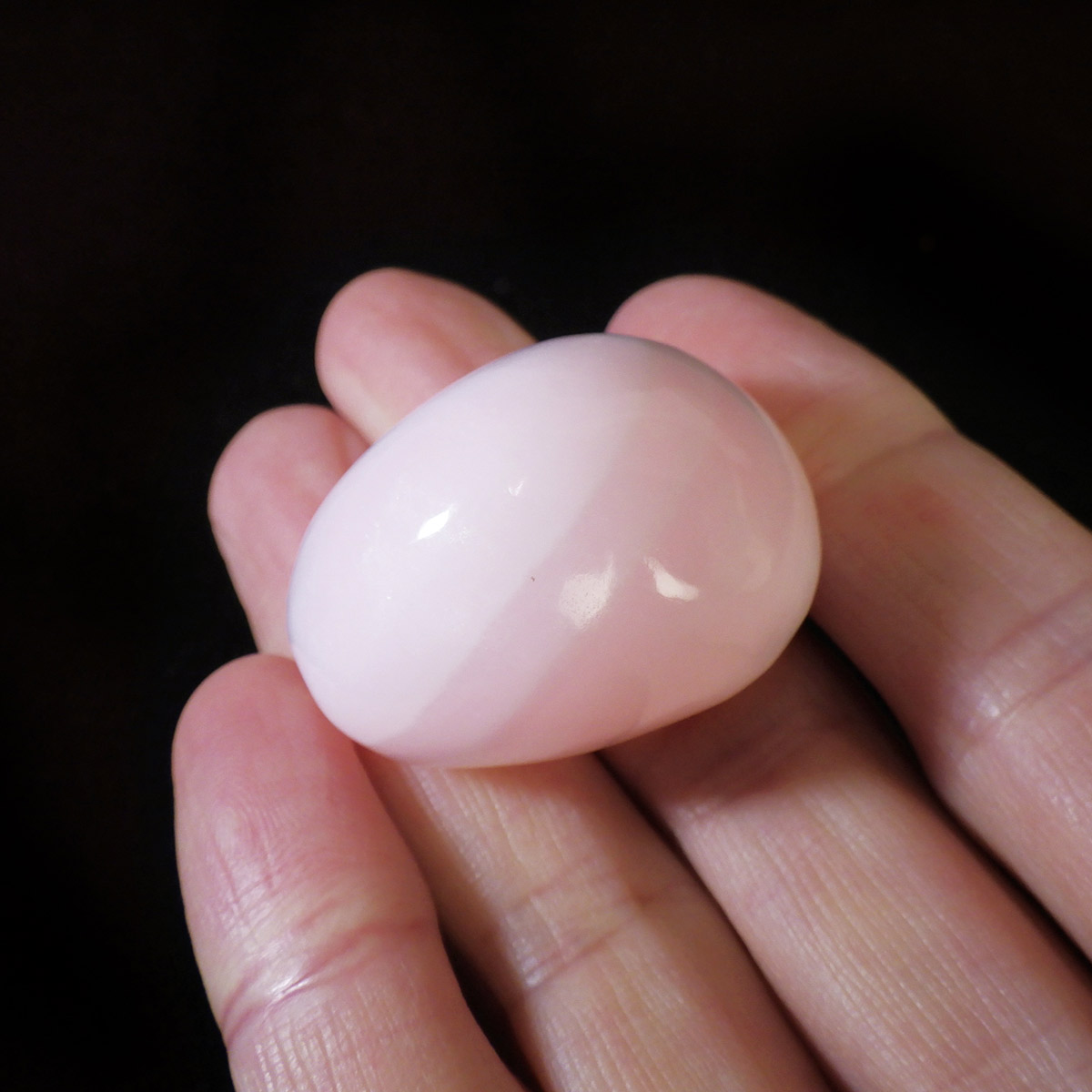 ペルー産のピンクカルサイト、タンブルです。とてもきれいでかわいらしいピンクで質も良いです。ピンクカルサイトはカルサイトの仲間です。マンガンが入っているので、淡く美しく、優しいピンク色になります。マンガンが含まれることにより、ブラックライトを当てると幻想的なピンク色に蛍光します。