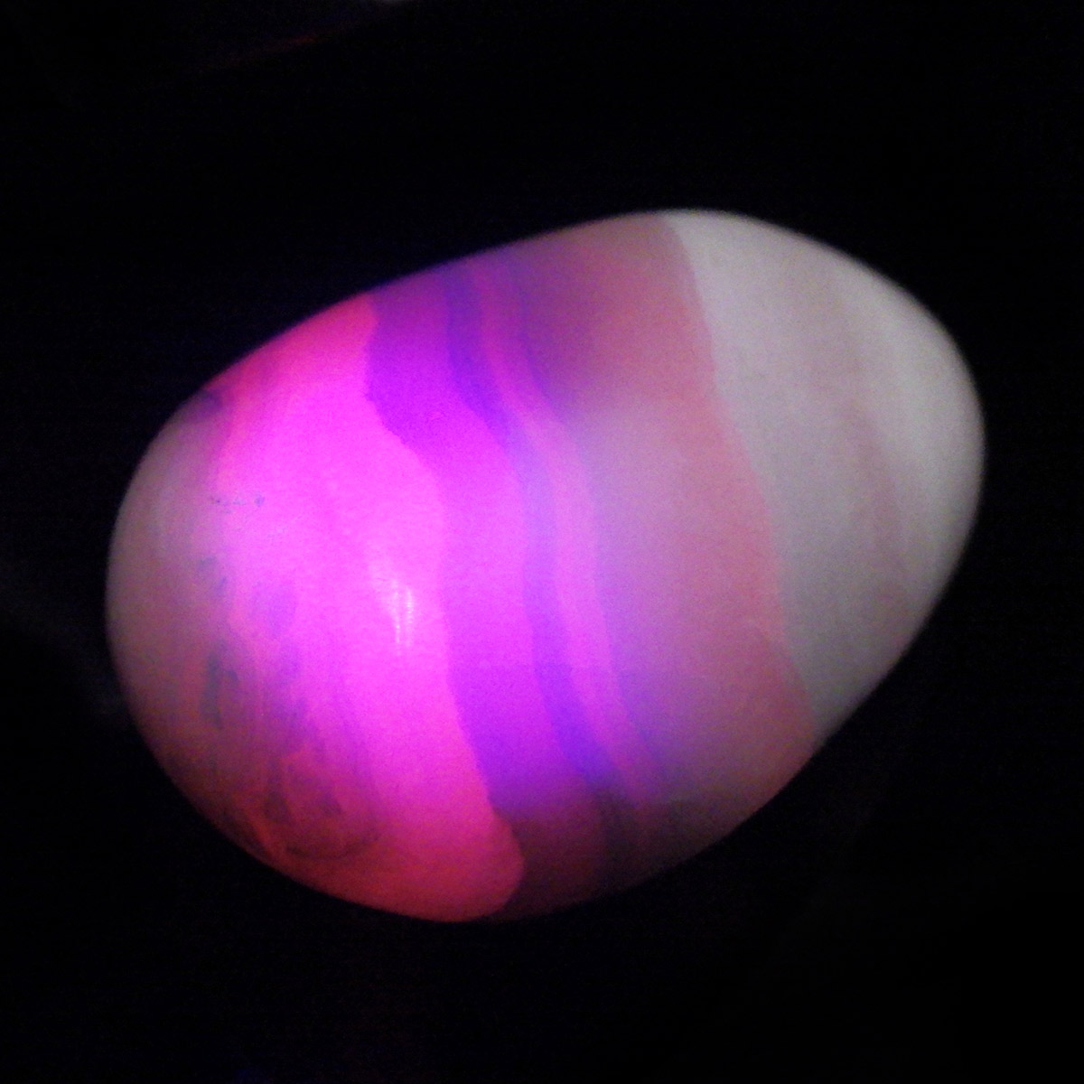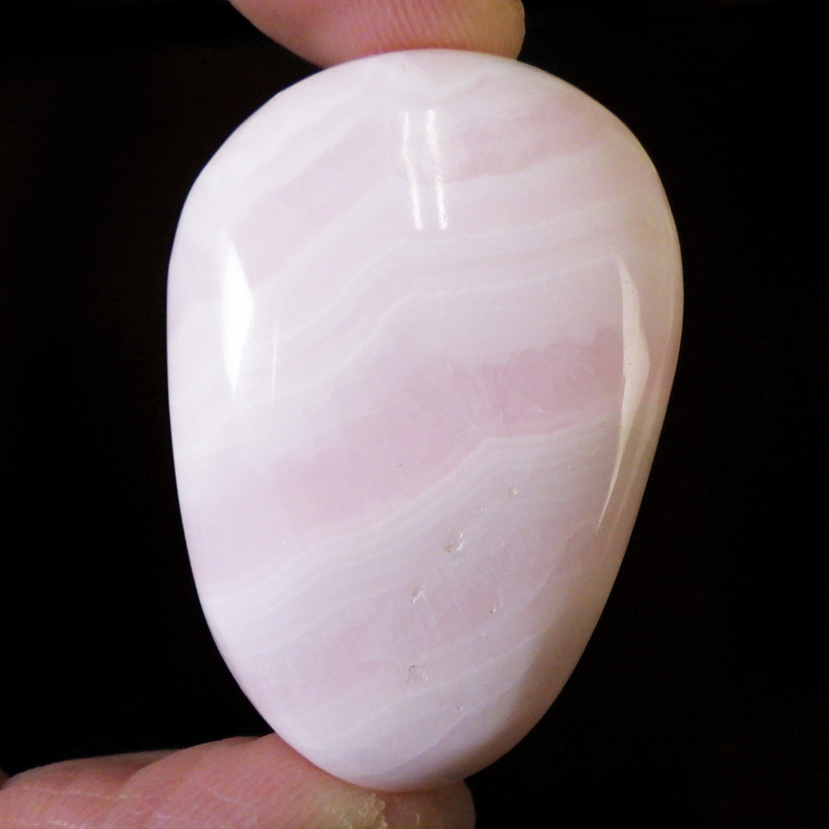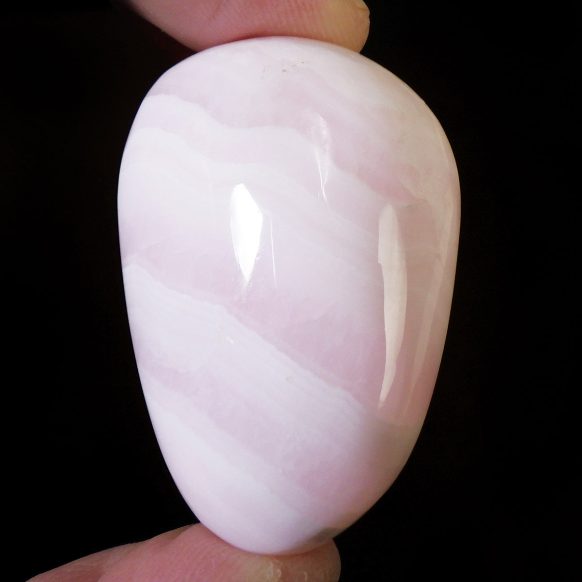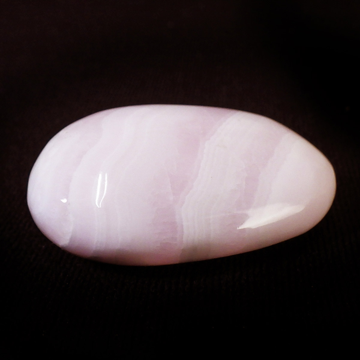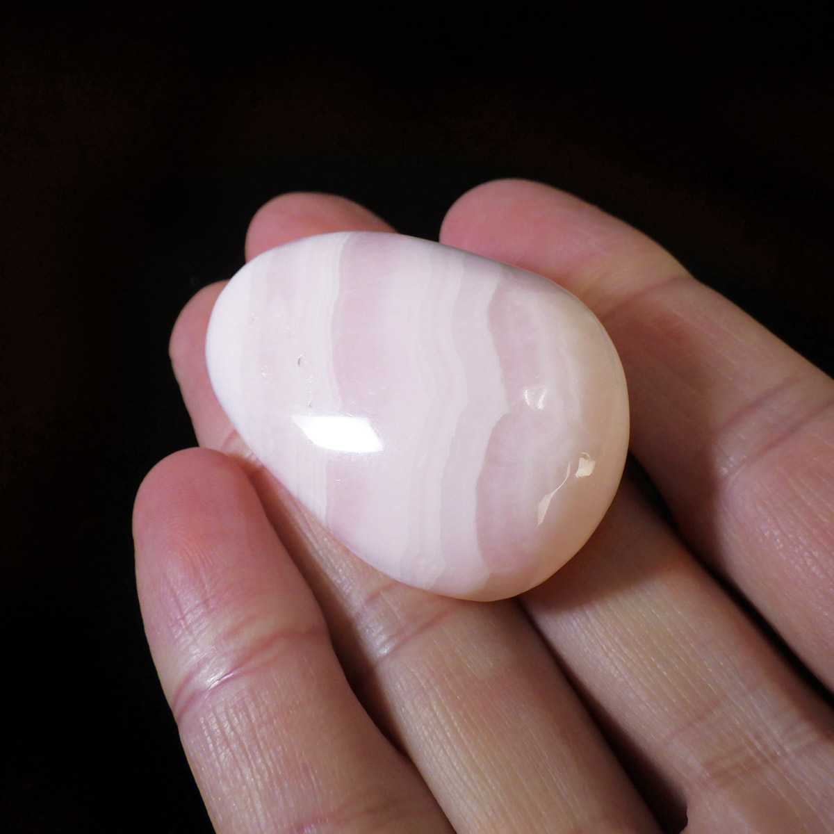 ペルー産のピンクカルサイト、タンブルです。とてもきれいでかわいらしいピンクで質も良いです。ピンクカルサイトはカルサイトの仲間です。マンガンが入っているので、淡く美しく、優しいピンク色になります。マンガンが含まれることにより、ブラックライトを当てると幻想的なピンク色に蛍光します。
