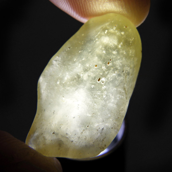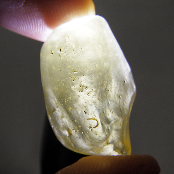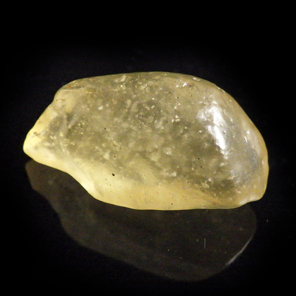 エジプト産、リビアングラスのタンブルです。リビアングラスはエジプト西部のリビア砂漠で採れる天然ガラスです。どのように生成されたかはっきりした事は解明されていませんが、モルダバイトのように宇宙を起源とし、隕石の衝突などで起こった巨大な熱反応によって地表の岩盤の一部を溶かして、偶然出来上がったものだという見方が一般的です。奇跡的に生まれた鉱物であるリビアングラスは、エジプトの限られた場所でしか採れないため大変希少です。