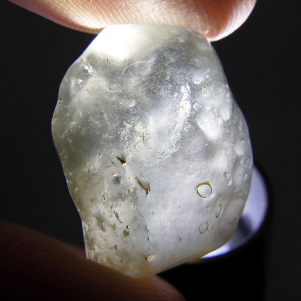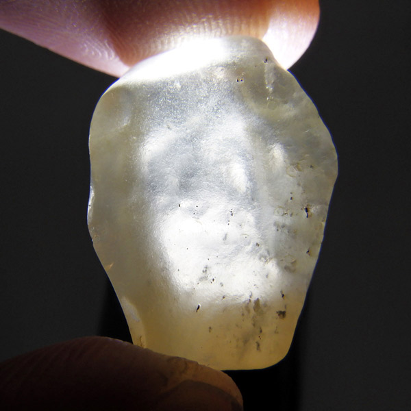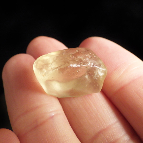 エジプト産、リビアングラスのタンブルです。リビアングラスはエジプト西部のリビア砂漠で採れる天然ガラスです。どのように生成されたかはっきりした事は解明されていませんが、モルダバイトのように宇宙を起源とし、隕石の衝突などで起こった巨大な熱反応によって地表の岩盤の一部を溶かして、偶然出来上がったものだという見方が一般的です。奇跡的に生まれた鉱物であるリビアングラスは、エジプトの限られた場所でしか採れないため大変希少です。