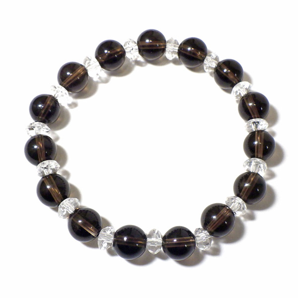 スモーキークォーツと水晶のブレスレット 8mm玉 内周15cm