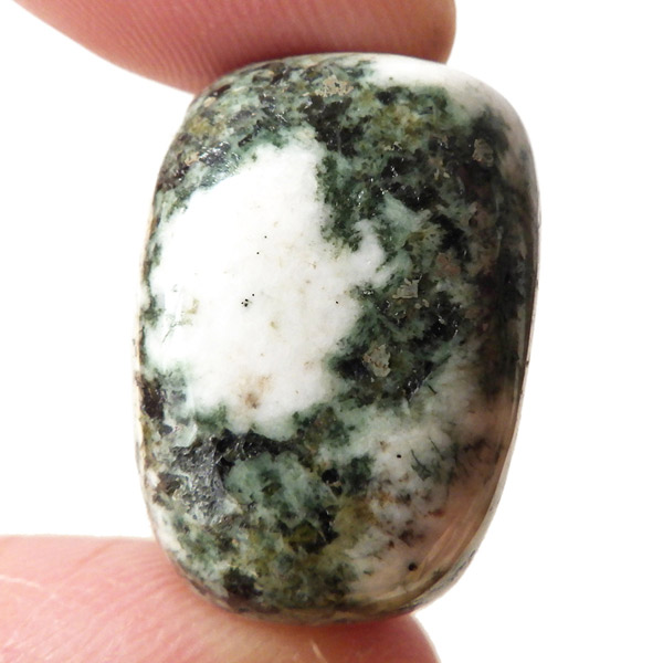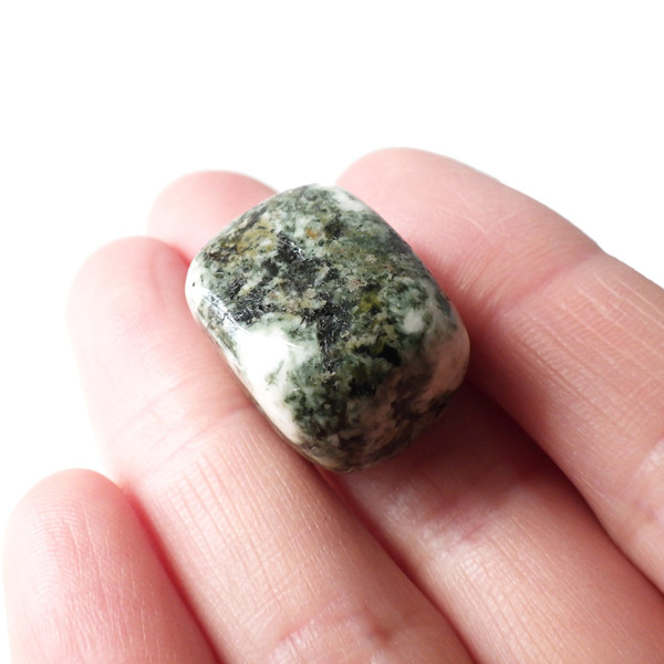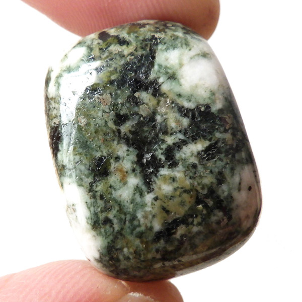 イギリス産プレセリブルーストーン、タンブルです。プレセリブルーストーン、別名「ストーンヘンジの石」の通り、イギリスにある世界遺産「ストーンヘンジ」建造に使用されたパワーストーンです。色味は灰色や黒っぽい濃い緑。ドレライトという鉱物の一種で、イギリスのペンブロークシャーのプレセリ丘陵のある場所でのみ採掘される希少な石です。その産出は世界で唯一この場所だけで、この地域で取れたドレライトだけを「プレセリブルーストーン」と呼べるということです。プレセリブルーストーンの採掘は現在、Preseli Bluestone Limited. だけが政府から認められています。そして、学術的にも 、古代のロマンや神秘としても、この石は多くの人を魅了しています。