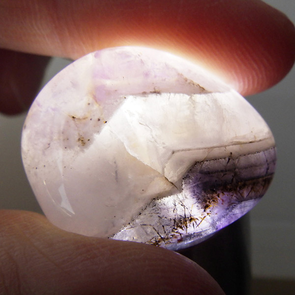 アメジストを中心に、金(ゴールド)・銀(シルバー)・プラチナ・鉄・銅・ニッケル・ゲーサイト・カコクセナイト・チタナイト・レピドクロサイト・エピドート・ルチル・アジョイト・パイライト・ヘマタイト・マグネタイト・パイロリューサイト・リモナイト・スファレライト・ガイアリト・ボルナイト・コヴェライト・チャルコパイライトの鉱物が含まれています。 また、隕石の衝撃によって、成長途中のアメジストに他の鉱物が溶解、混合し、石表面に付着することで生成された石とも言われています。産出量が少なく希少価値が高いため、あまり市場に出回らない鉱物の一つです。