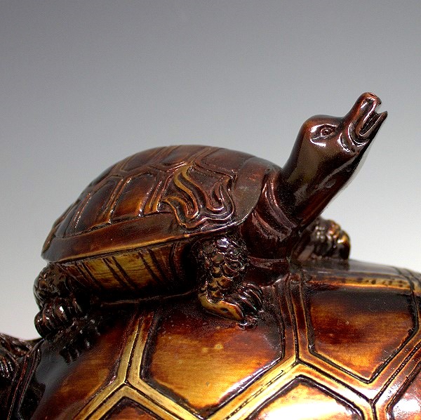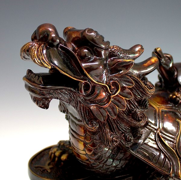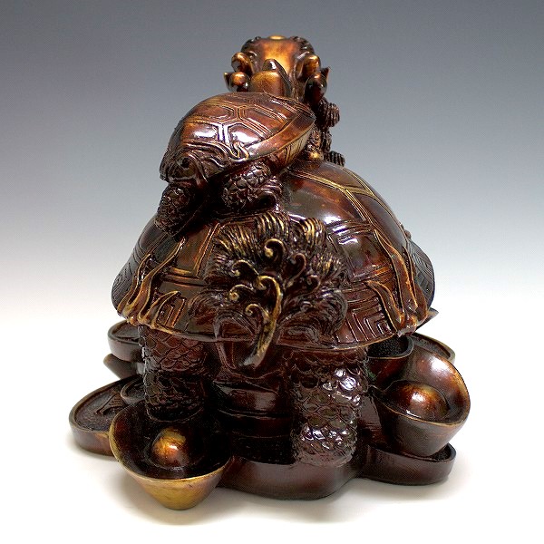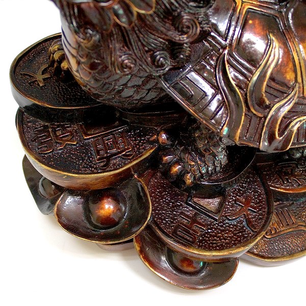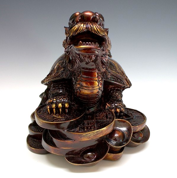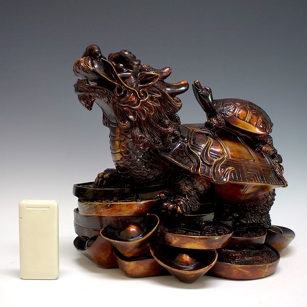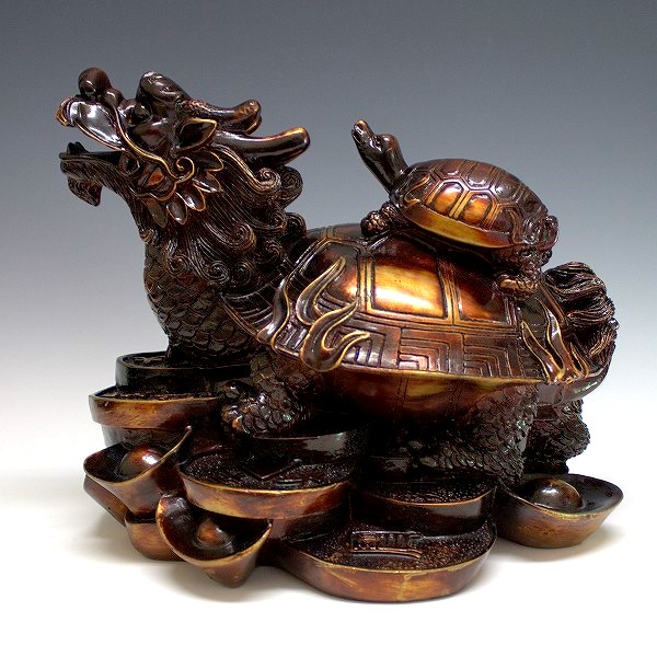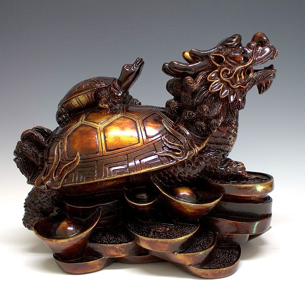 古代中国の神話上の霊獣である龍亀(ロングイ)は、風水では、龍の強い霊力と亀の保護力を持っているとされています。「正財」(労働など汗を流して得る金運)を招き、仕事上の良い運気や人脈を招くといわれ、主にビジネスや商売の場で扱われる縁起物として人気のアイテムです。