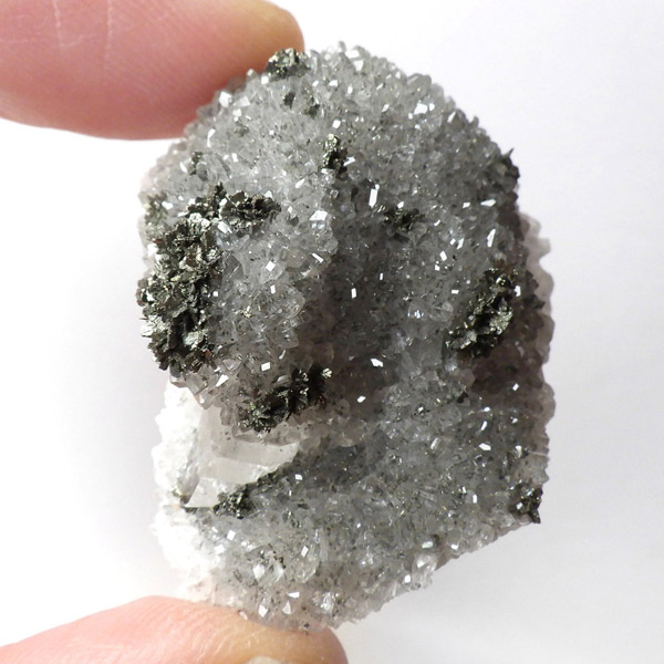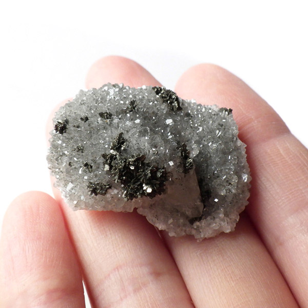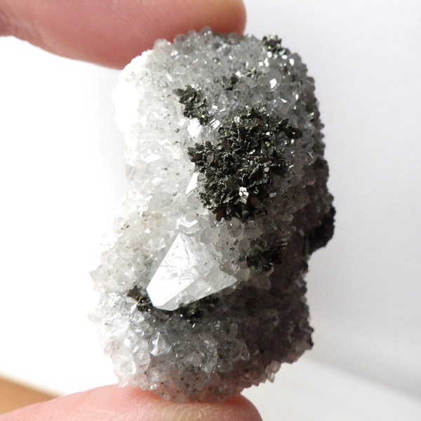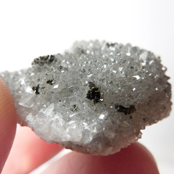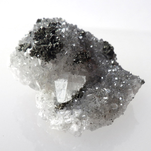 アメリカ・アイオワ州産、マーカサイトを内包したカルサイトの結晶です。カルサイトのキューブ結晶は、素晴らしい煌きとテリとレインボーがみられます。複屈折という光学現象を持ち、文字の上に載せると二つにダブって見える「ダブリング(二重像現象)」のような現象を起こします。それによって内部のマーカサイトやレインボーがダブって見え、楽しい世界を見せてくれます。