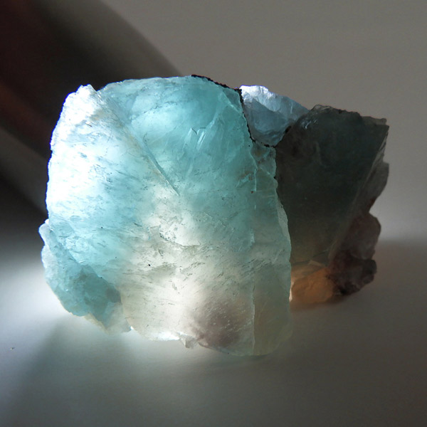 ドイツ・シュヴァルツヴァルト産のフローライト原石です。当たる光の関係で、ブルーやグリーンに見える美しいフローライトの結晶です。このフローライトはドイツの「シュヴァルツヴァルト」で産出されたものです。「シュヴァルツヴァルト」とは、ドイツ語で「黒い森」を意味し、この森は、密集して生えるトウヒの木によって、暗く見える事によりその名が付きました。ここで産出されるフローライトはブルーグリーンの美しいものが多く、塊状に出土します。