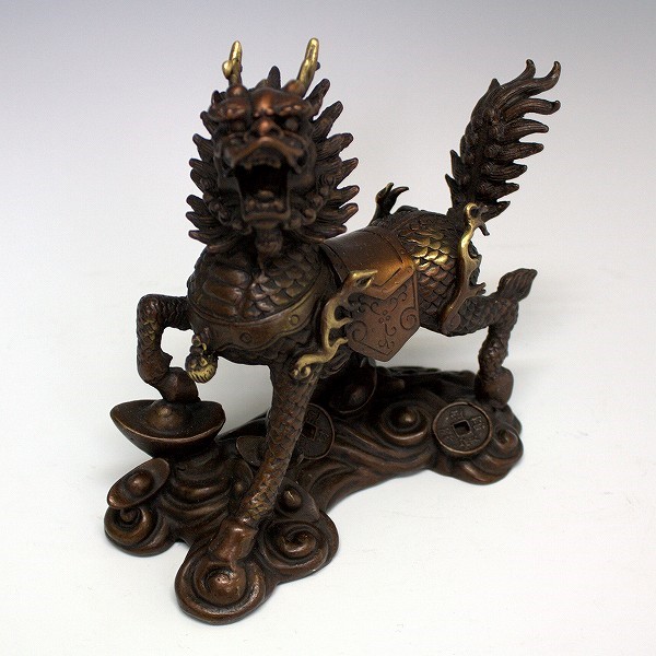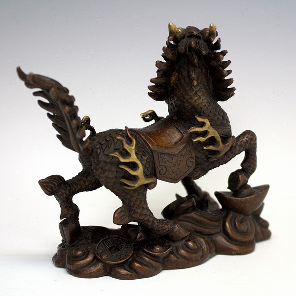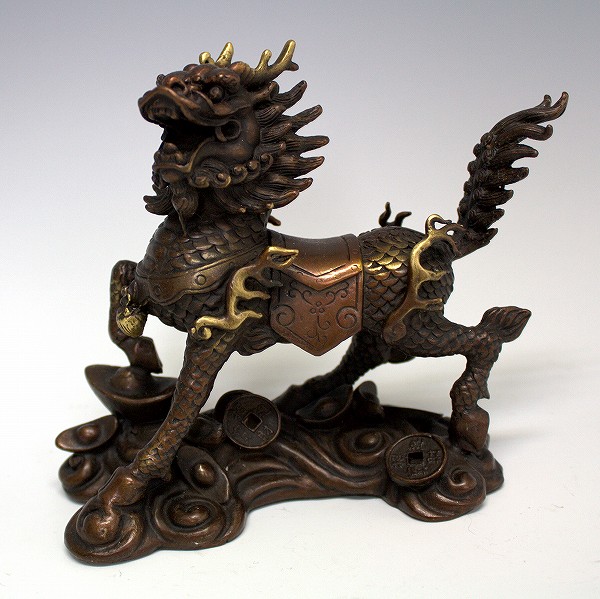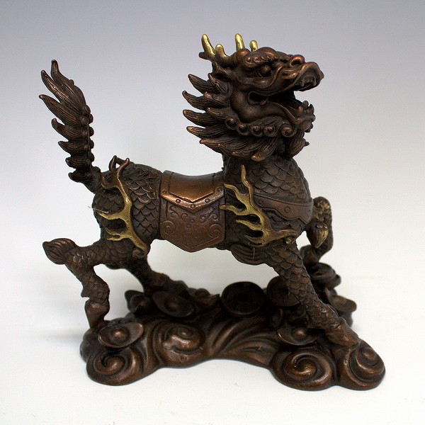 手頃な大きさの銅製の 麒麟の置物 です。