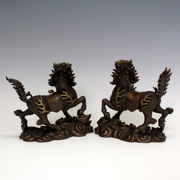 銅器 麒麟 雌雄セット 13cm