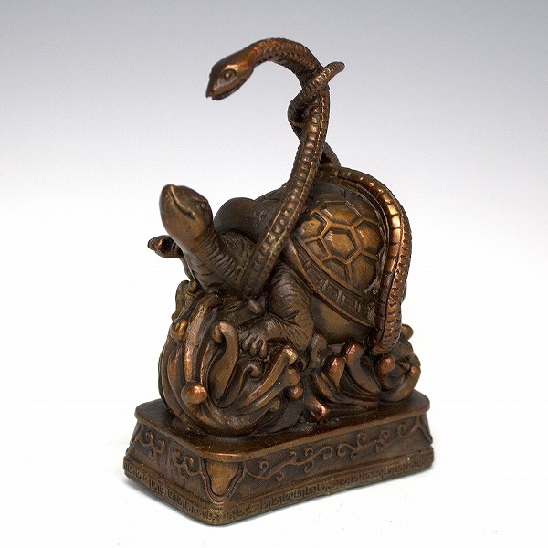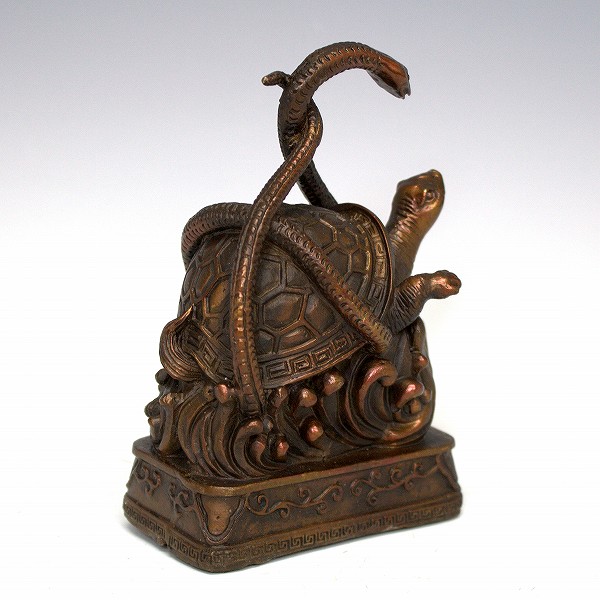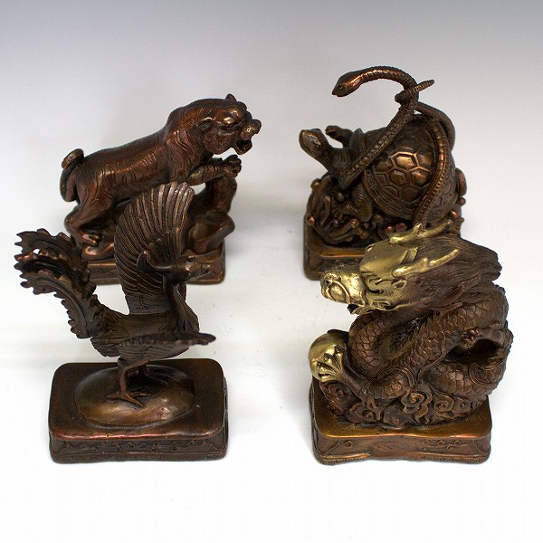 手頃な大きさの銅製の 四神の置物 です。四神(しじん)とは、四獣、四象、四霊とも呼ばれる方角を司る霊獣です。青龍(せいりゅう)は東、朱雀(すざく)は南、白虎(びゃっこ)は西、玄武(げんぶ)は北に位置し、中央には黄龍や麒麟が置かれます。